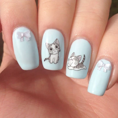 Особенности: узор с котом, клей, инструмент для маникюра