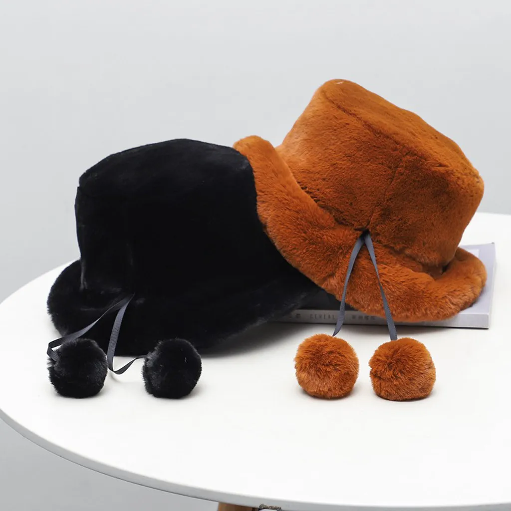 Ladies Winter Bucket Hat Cute And Warm Caps Hunting Fishing Hat