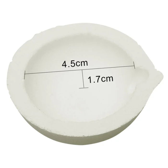 S: Диаметр: 4,5 см глубина: 1,7 см, может держать 150 г золота