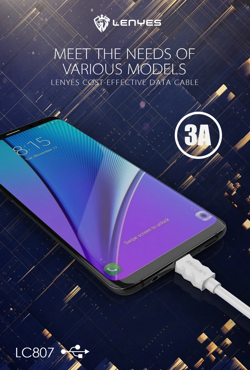 Наименование товара: кабель для быстрой зарядки 3 A type C/iOS/Micro V8 Партномер: LC807-3A Цвета: белый Разъем: V8/iOS/type C Длина: 100 см Выход: 3A Материал: ПВХ Функция: зарядка и передача данных Бренд: Lenyes