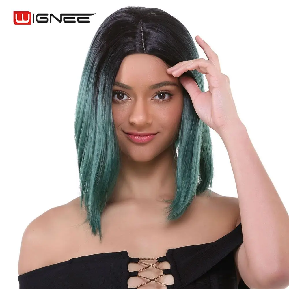 Wignee короткие прямые волосы синтетические парики боб 2 тона Омбре зеленый ежедневно/вечерние/косплей для черных и белых женщин натуральные волосы парики