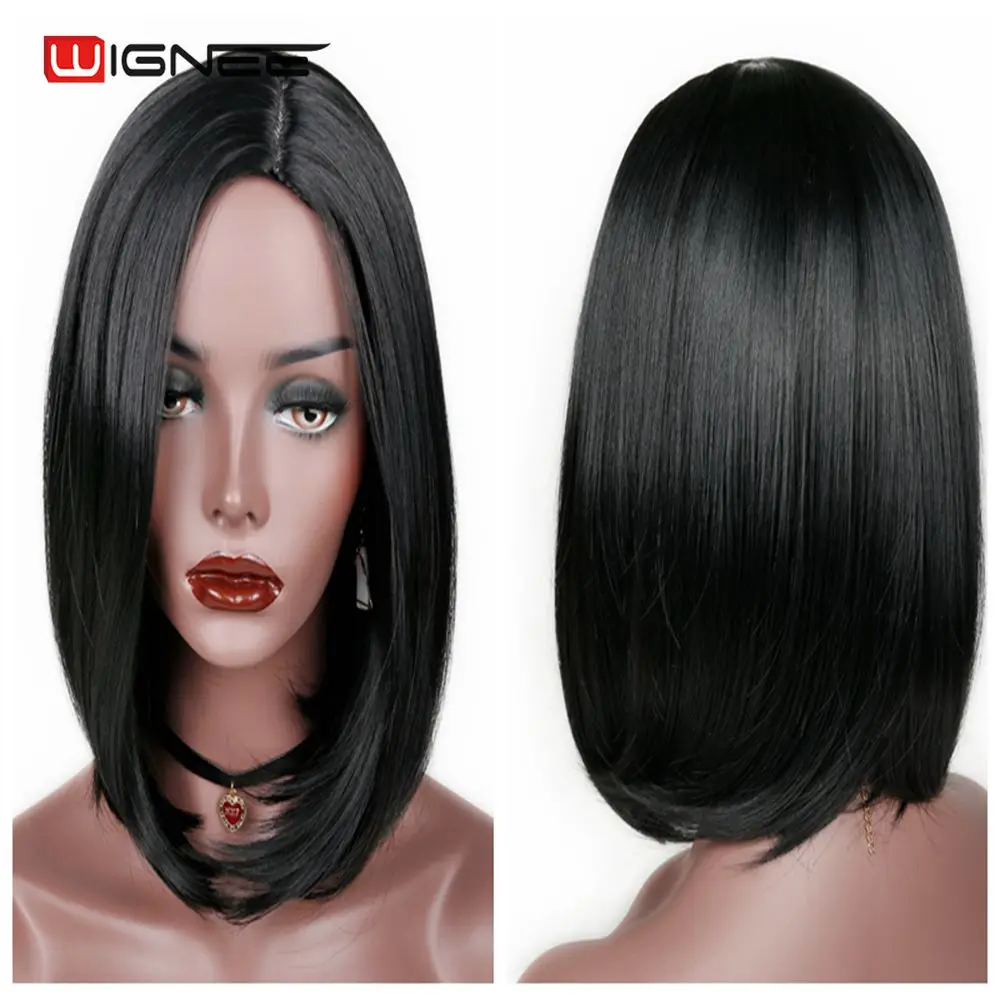 Отличное Качество: 100% термостойкий парик из 100% термостойкого волокна. С дизайном центрирования париков, он был изготовлен из теплосберегающего волокна. Магазин волос Wignee, новая прическа, новое ощущение