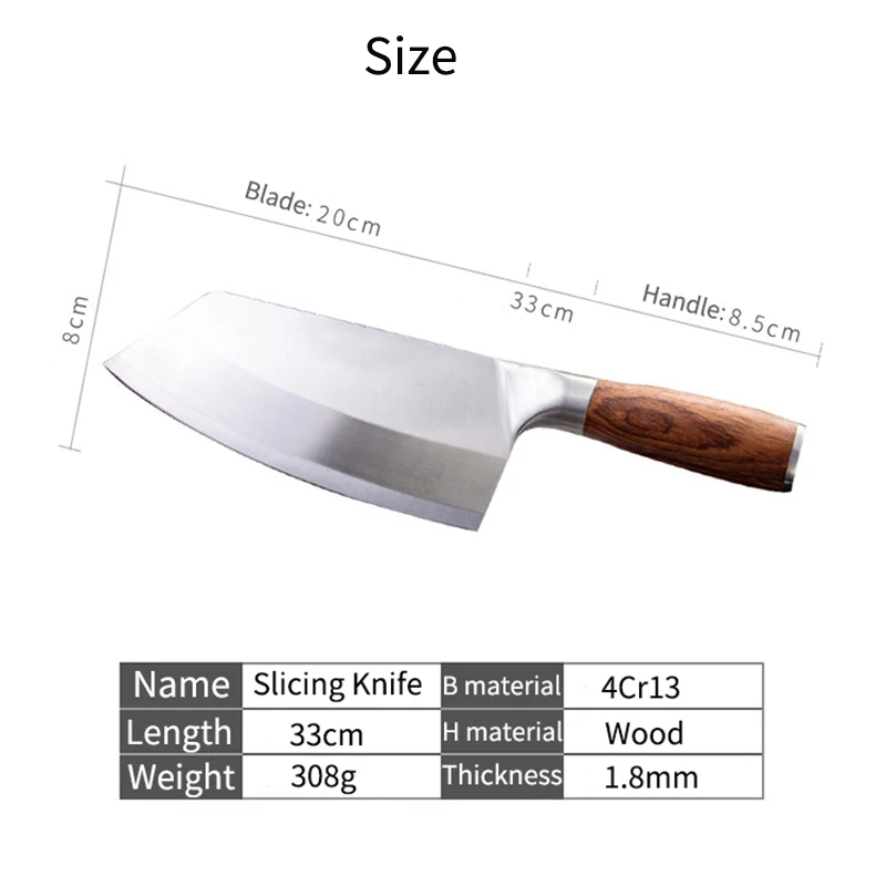 Стирать вручную и сушить мягкой тканью сразу после использования Ножи Тип: Кливер Особенности: экологически чистый Материал: нержавеющая сталь 4Cr13 Товар включает: 1 Кливер Размер: как показано на картинке Примечание: 1. Возможны незначительные отклонения в измерениях из-за ручного измерения. 2. Логотип может быть нанесен на нож. 3. Пожалуйста, не используйте его для резки замороженных продуктов.