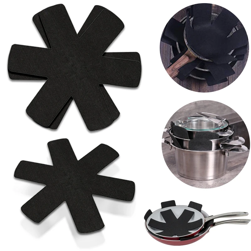 4. Функция-защита кастрюль и сковородок эффективно предотвращает повреждение или царапины вашей кухонной посуды и стеклянной посуды во время хранения в шкафу или ящиках или во время транспортировки или доставки.