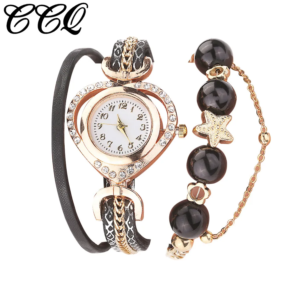 CCQ Женские винтажные сверкающие жемчужные браслеты с циферблатом Аналоговые кварцевые наручные часы