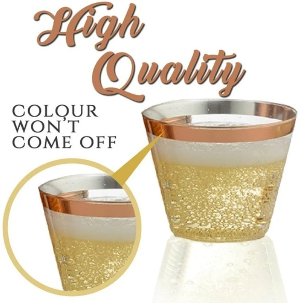 Стильный и премиум: ободок из розового золота обеспечивает высококлассное ощущение, эстетическую привлекательность и делает одноразовые чашки идеально подходит для свадеб, Нового года, дней рождения, коктейлей, девичников, детских или свадебных душевых и многого другого.