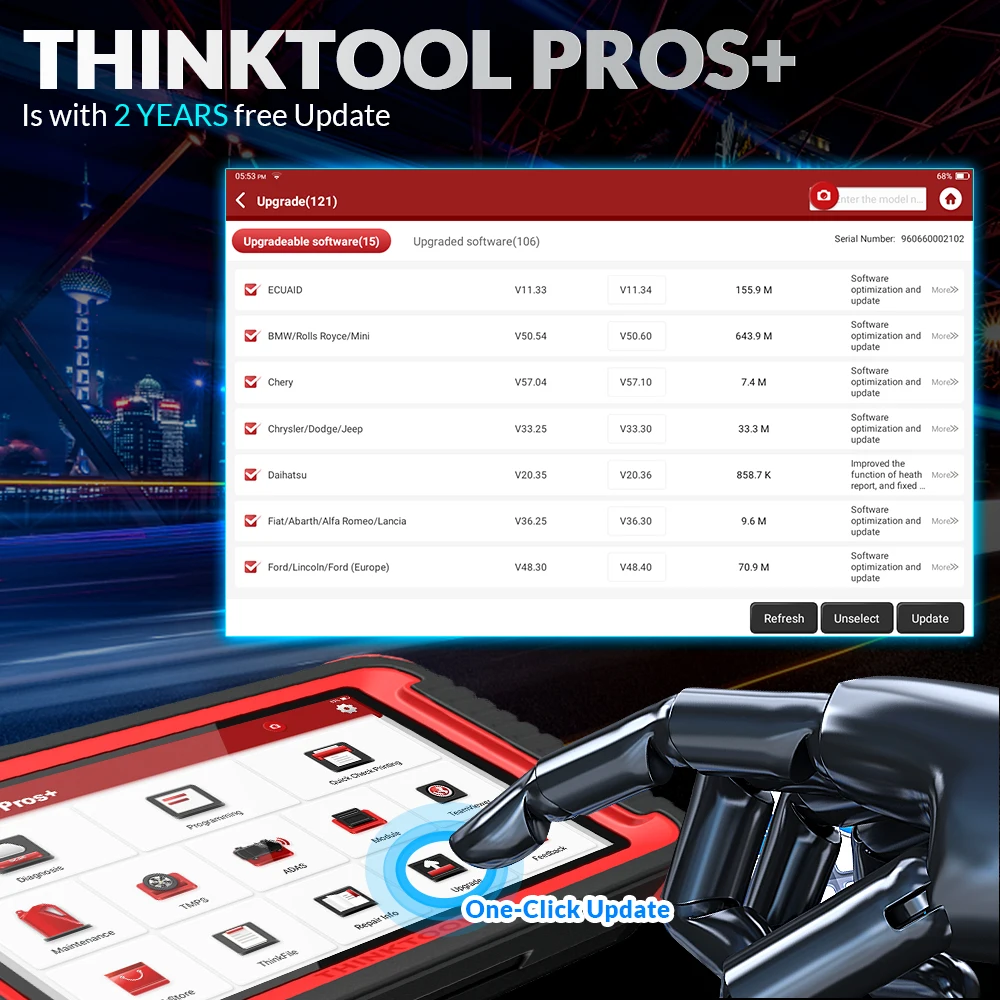 6. Онлайн один клик для обновления диагностического программного обеспечения, клиента и прошивки.