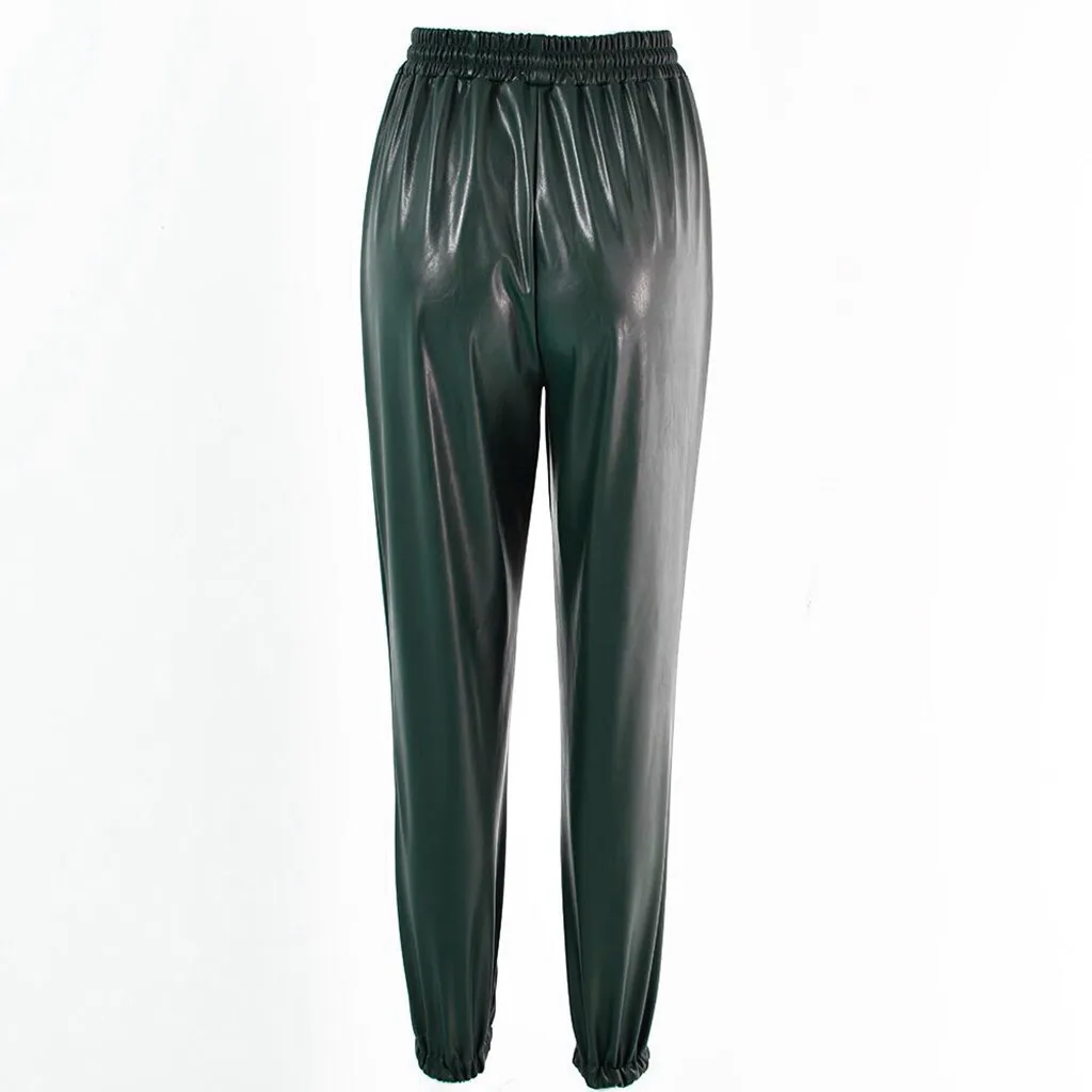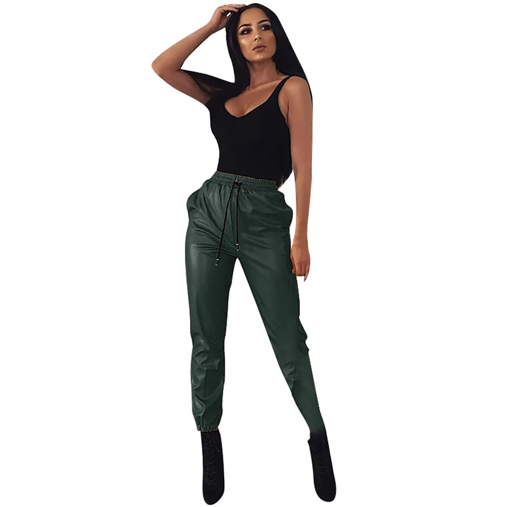 Модные женские эластичные брюки из искусственной кожи с высокой талией; Повседневные уличные брюки