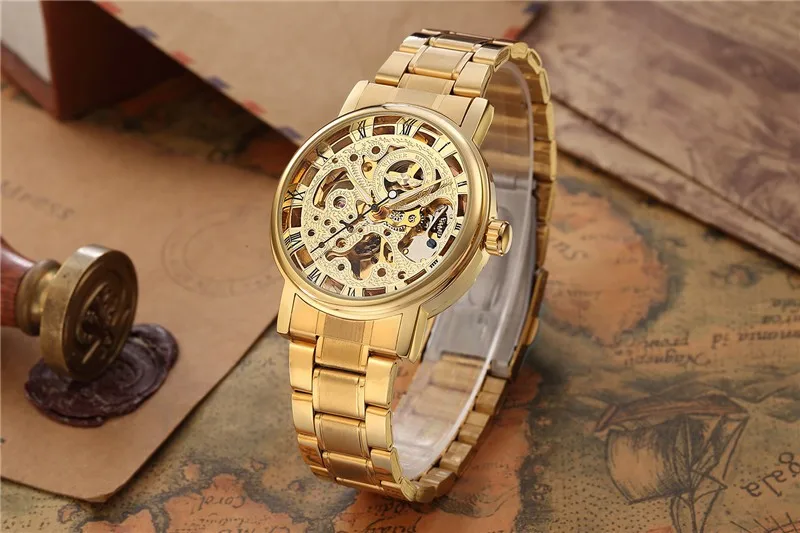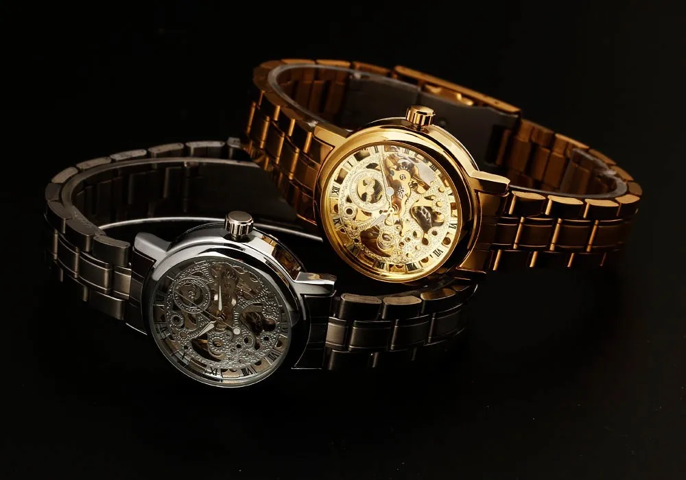 Relogio Masculion Топ люксовый бренд WINNER мужские новые черные мужские наручные часы с скелетом из Нержавеющей Стали Античные часы в стиле стимпанк