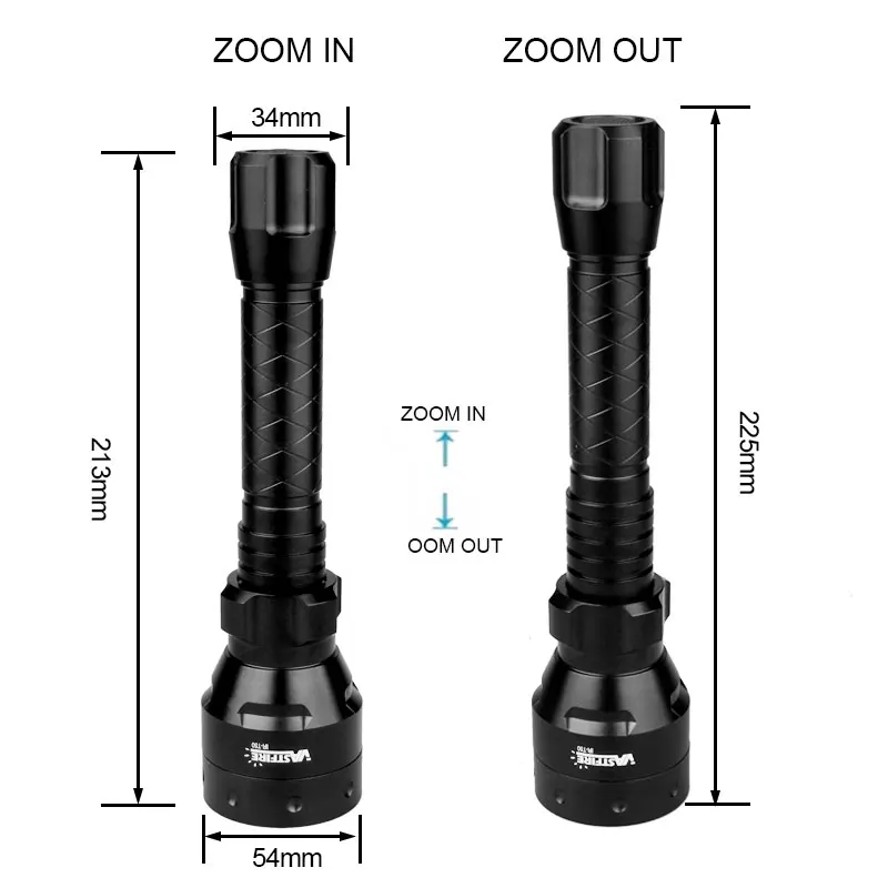 1. Высококачественный чехол для корпуса, не нравится дешевым фонарикам! 2. Масштабируемый объектив 55 мм с функцией фокусировки, дальним расстоянием освещения 3. Если вы хотите более длительное время использования, рекомендуем использовать 2 шт. 18650 батарей Модель: UF-1405 Светодиодный бренд: XP-E2 Яркость: 350lm Материал изделия: алюминиевый сплав Источник питания: Питание от 2 батарей 18650 Режим переключения: только 1 режим (высокий) = только переключатель ВКЛ./ВЫКЛ. Переключатель: тактный переключатель Водонепроницаемость: только защита от брызг Линза: 55 мм выпуклая линза Тела Цвет: черный Время работы: 1-3 часа Размеры: 210 мм (+ 17 мм) (длина)/54 мм (головка)/25 мм (корпус)/34 мм (хвост) Вес: около 375 г Ремешок: в комплекте