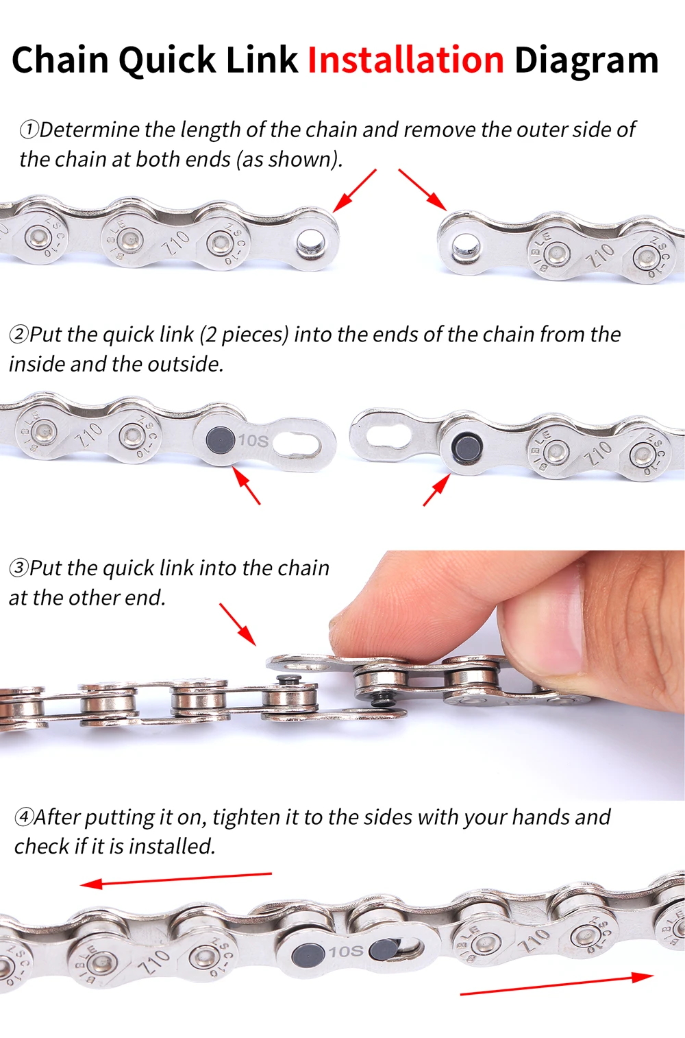 Цепь quick link имеет срок службы, рекомендуется разбирать менее 5 раз (вы можете купить больше пар в качестве резервного копирования).