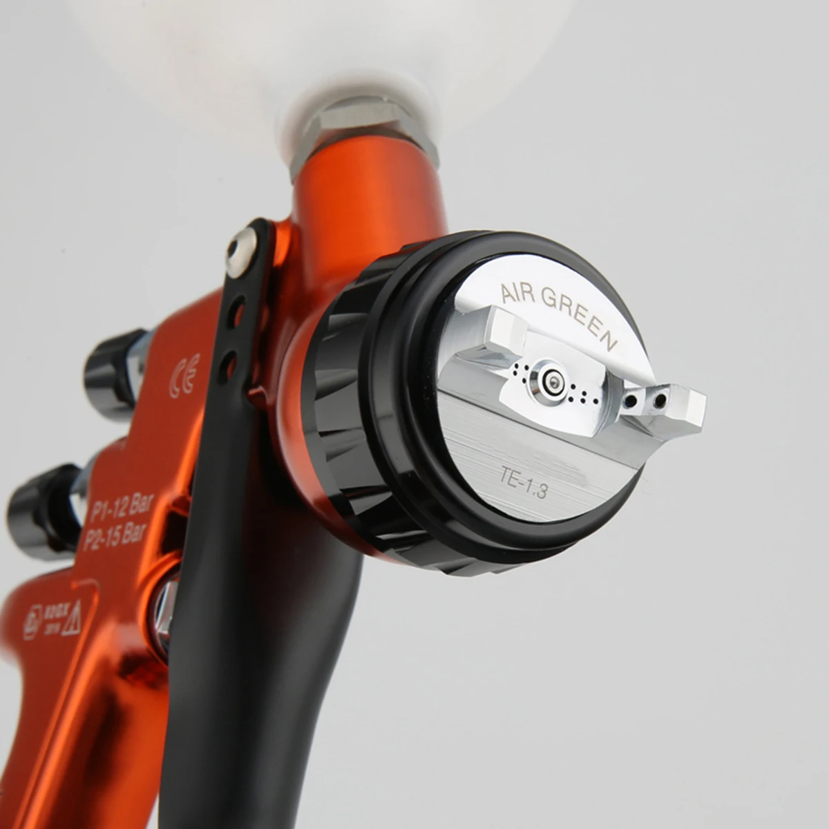 Диапазон четырех передовых технологий воздушных колпачков (один HVLP и три высокой эффективности) для оптимальной производительности с новейшими растворителями и покрытиями, покрытыми водой.
