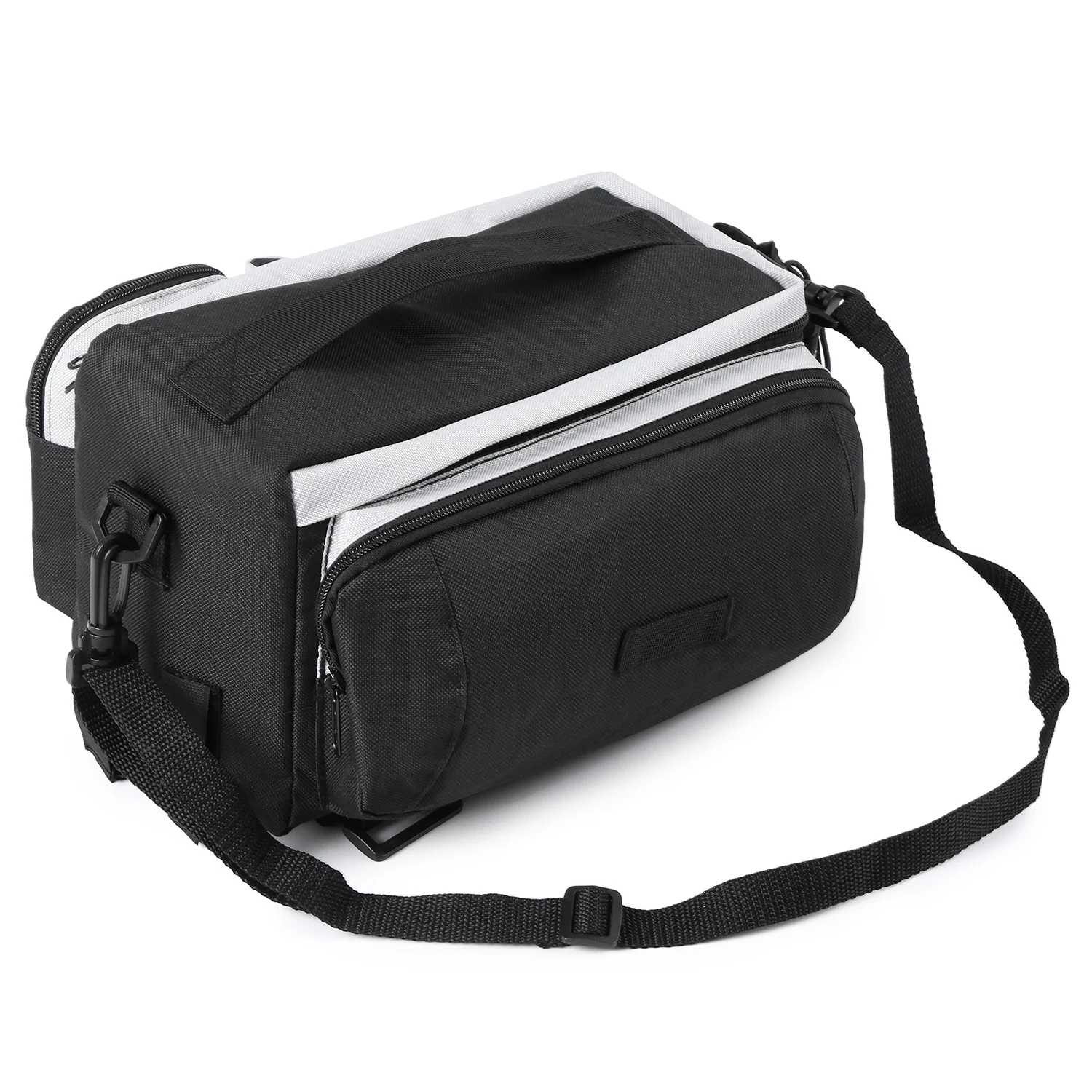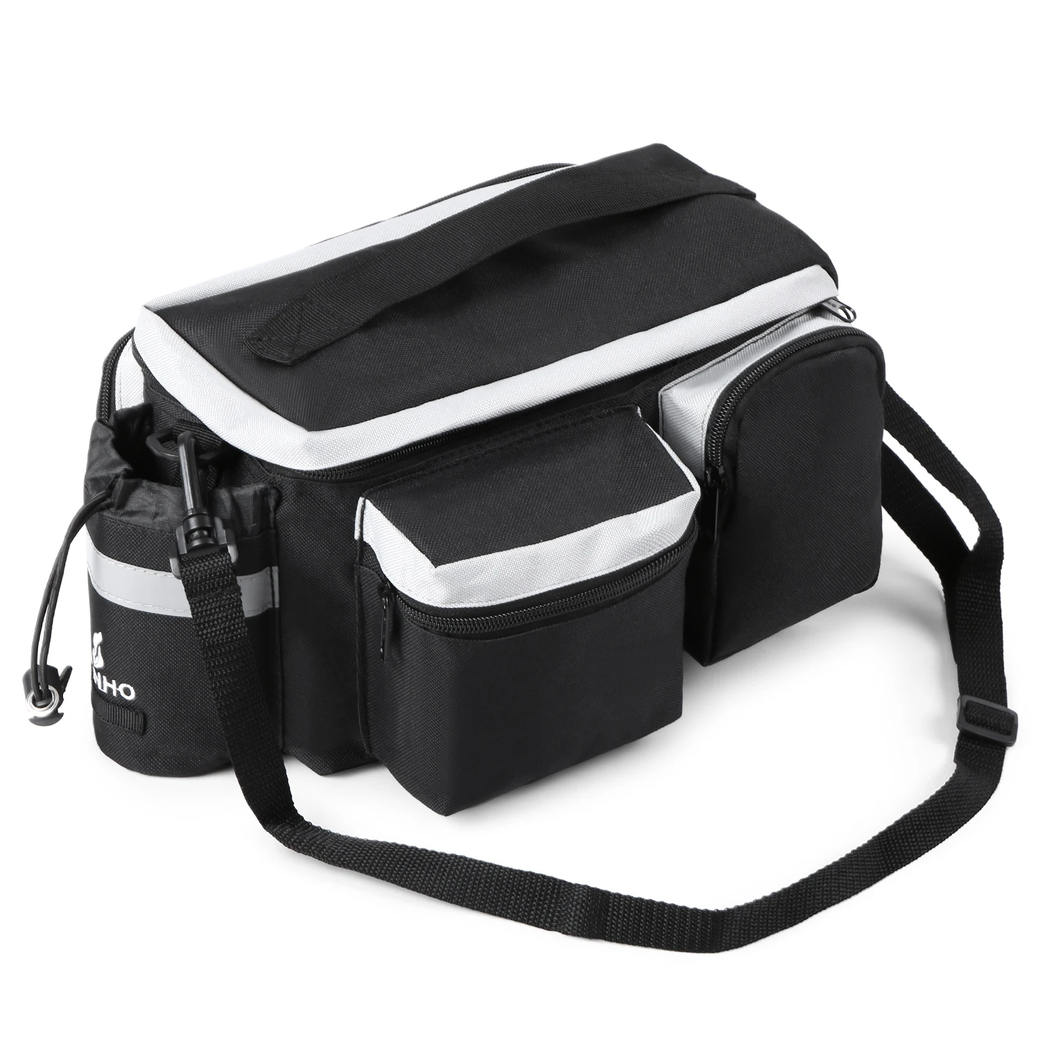 Задняя подставка для велосипеда изготовлена из водонепроницаемой ткани Оксфорд и мягкой подкладки, чтобы обеспечить максимальную защиту ваших вещей. Он оснащен вместительным основным отсеком и 4 внешними карманами для большого объема ваших вещей. Благодаря светоотражающей полосе и вешалке для задних фонарей улучшается видимость и безопасность. Легко устанавливается на велосипед с помощью регулируемых крепежных ремней, а также может использоваться как сумка или сумка через плечо после снятия с велосипеда.