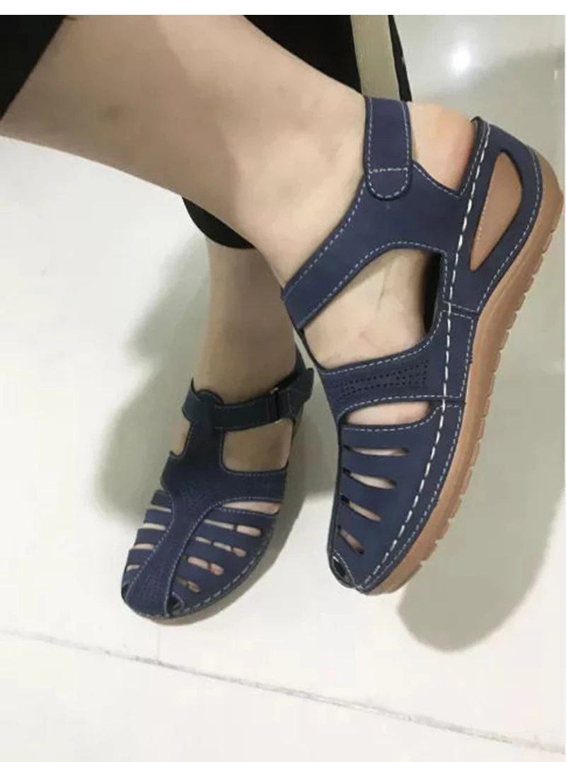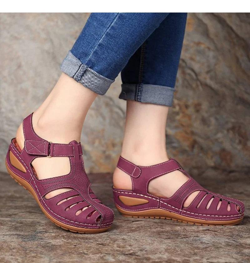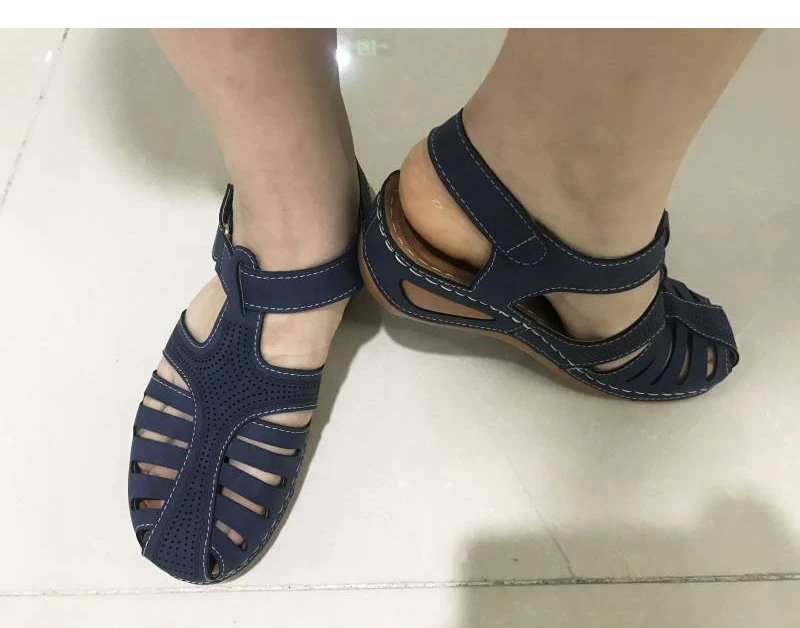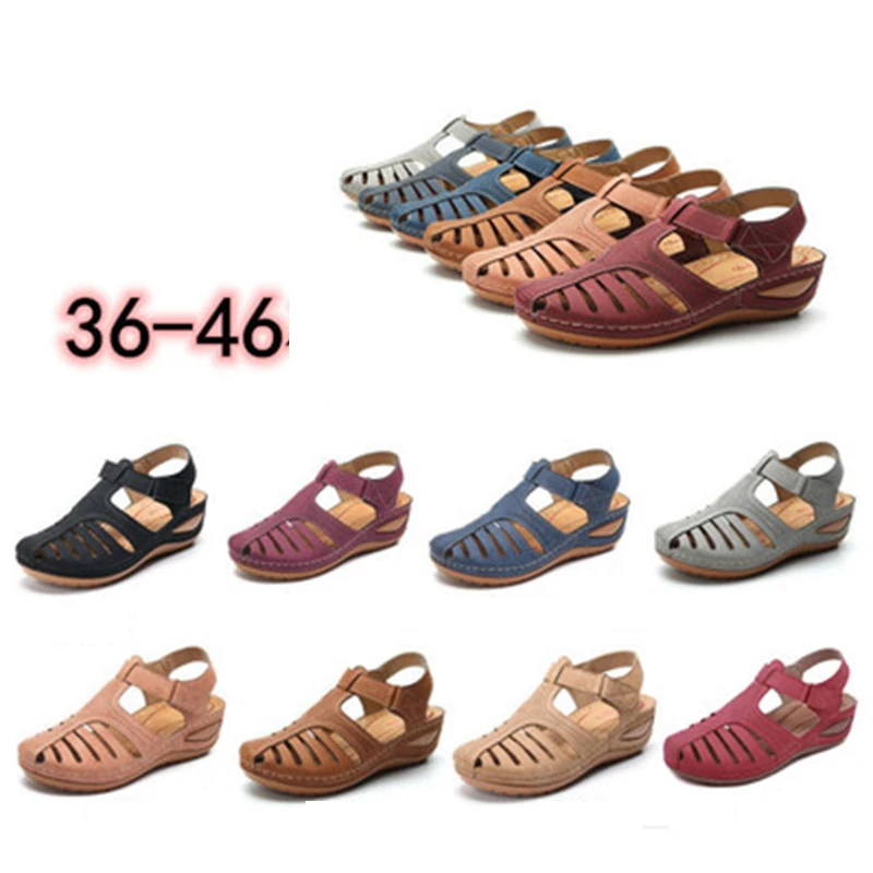 Женские летние сандалии; Женские сандалии с круглым носком на мягкой танкетке; Женские сандалии; Chaussures Femme; Размеры 36-46
