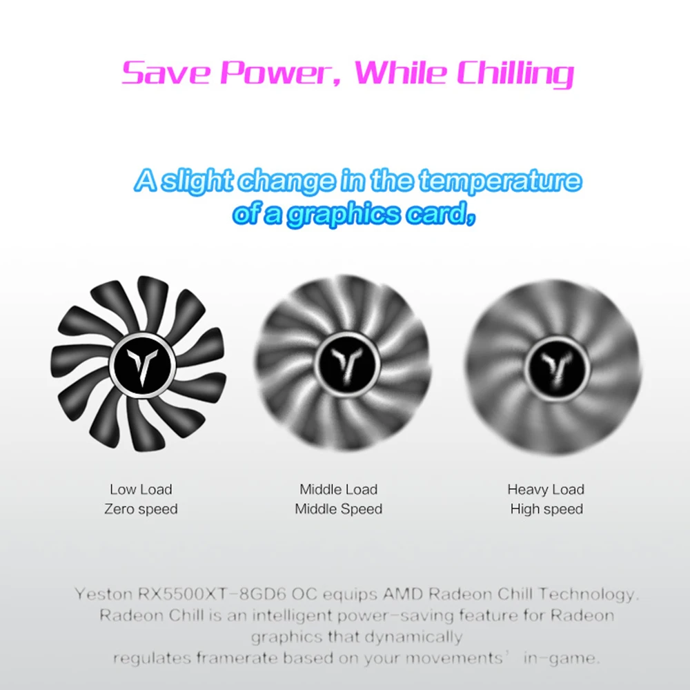 Вентилятор может автоматически регулировать скорость в соответствии с нагрузкой, делает температуру видеокарты, бесшумную, энергосберегающую регулировку более интеллектуальной.