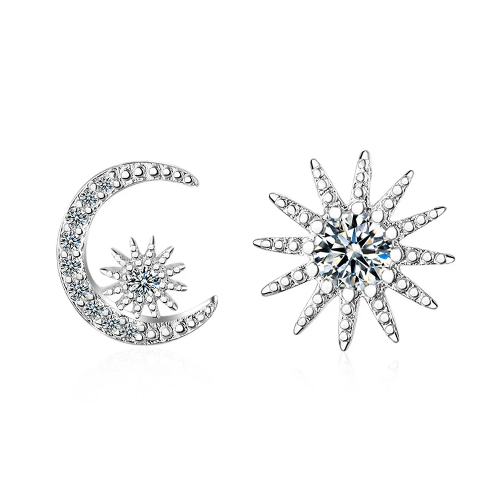 Модные асимметричные серьги с Луной и звездой для женщин и девушек, ювелирные изделия из стерлингового серебра 925 пробы с фианитом ААА, свадебные серьги-гвоздики для женщин, brincos Материал: серебро 925 пробы, циркон Размер: как показано на рисунке Состояние: 100% новый бренд Повод: подарок на свадьбу, день рождения, День святого Валентина