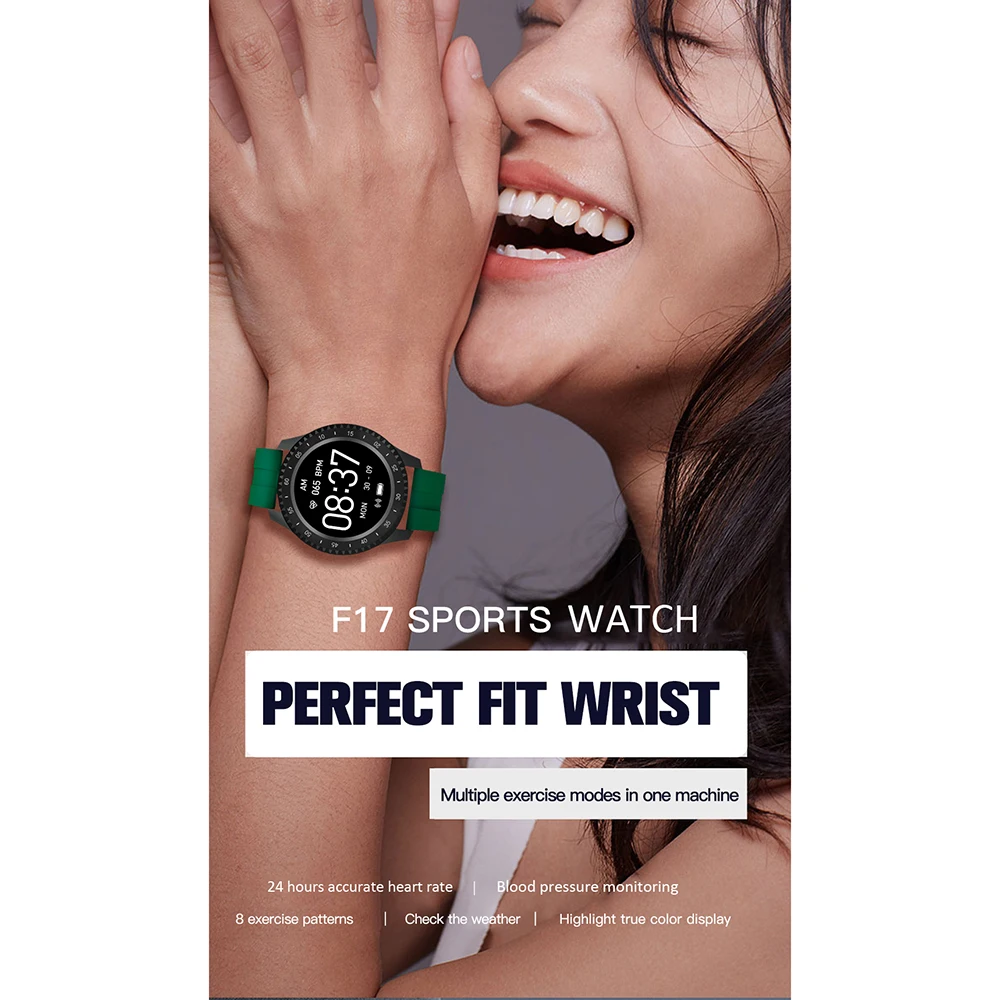 Умные часы F17 с полностью сенсорным экраном 1,54 дюйма, имеют такую практичную функцию, как Водонепроницаемость IP68, прогноз погоды, фитнес-трекер, удаленная камера и т. д., подходит для различных типов людей.