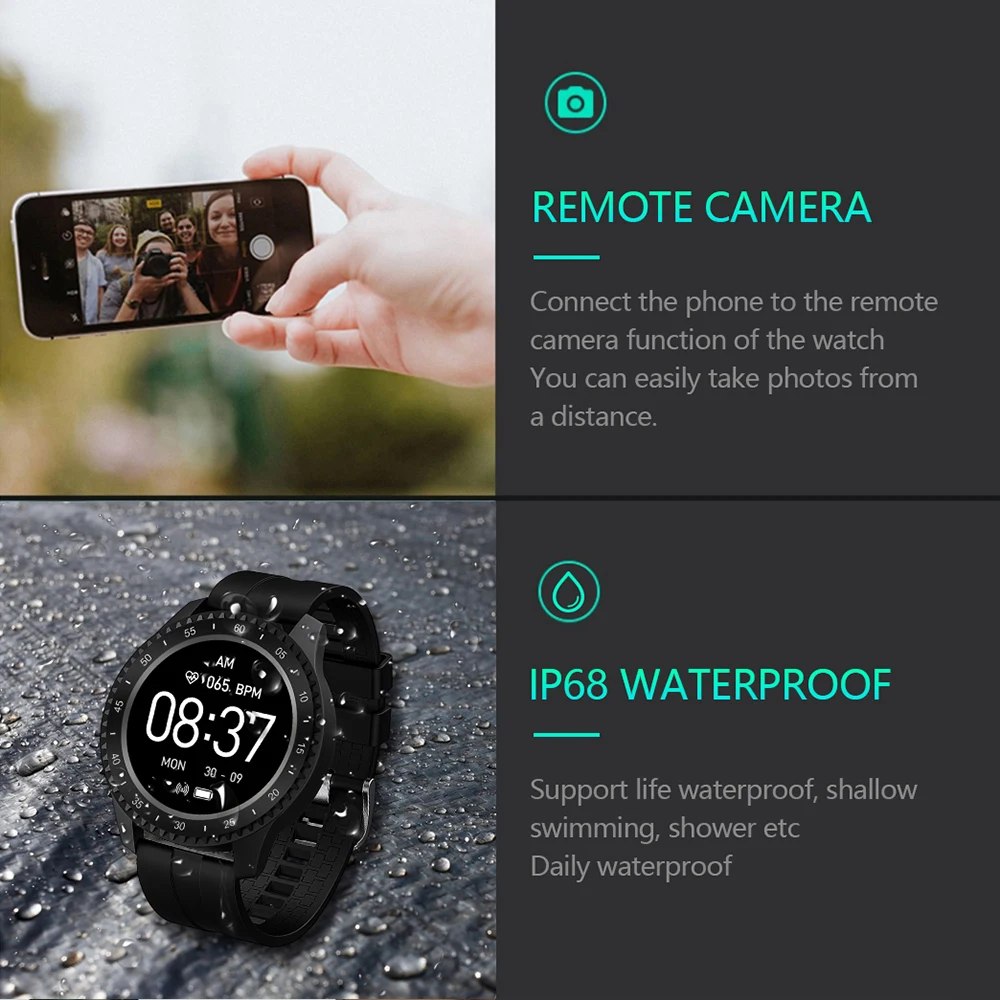 Удобная конструкция:Сдвижное сенсорное управление влево и вправо удовлетворяет привычку индивидуального использования; Водонепроницаемость IP68 отвечает ежедневным требованиям. Кроме того, из-за поднятой функции экрана запястья, даже ночью вы можете четко видеть экран, просто подняв запястье. Что еще? Функция удаленной камеры часов позволяет решить проблему с фотографированием на расстоянии. Красивый selfie-легко взять с собой.