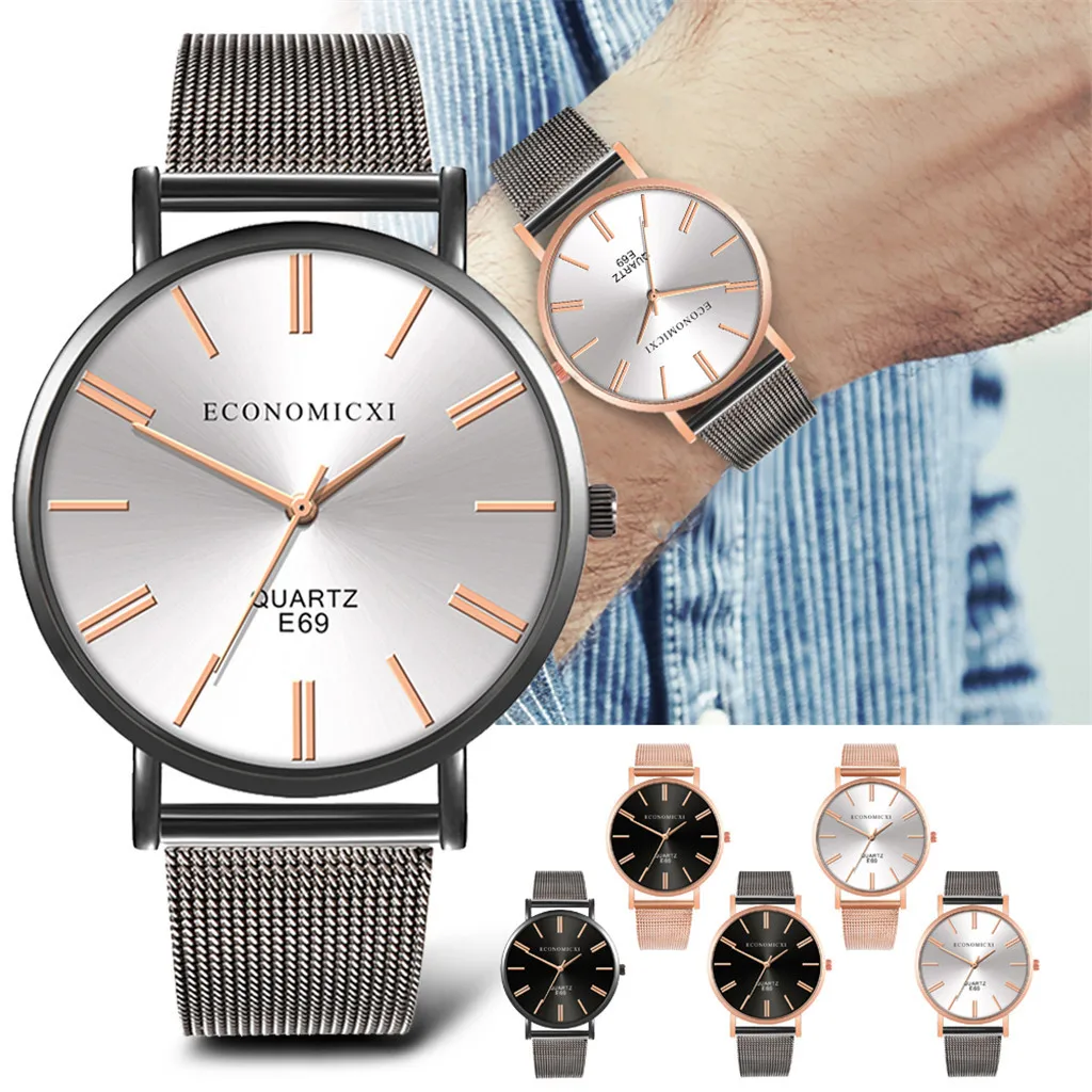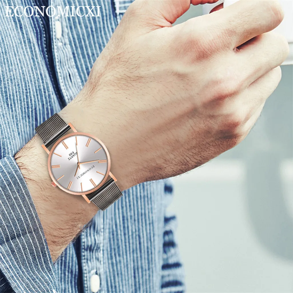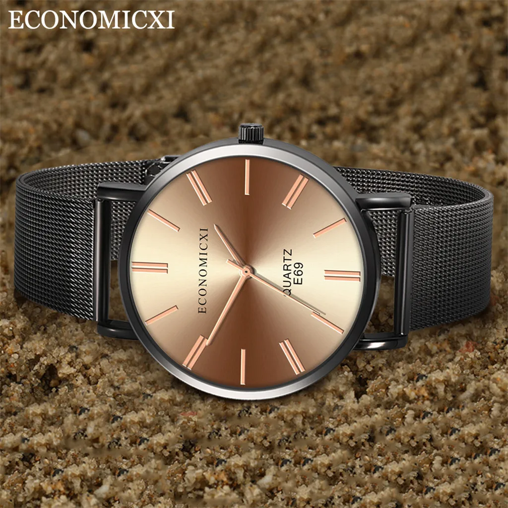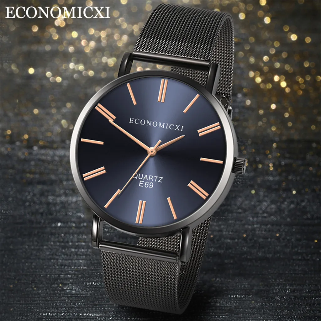 Мужские деловые кварцевые наручные часы серии с сетчатым ремешком и круглым циферблатом, роскошные часы с шармом, часы 12 часов, сплав, ремешок, подарок для мужчин, черный