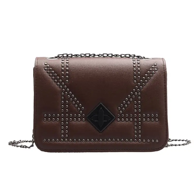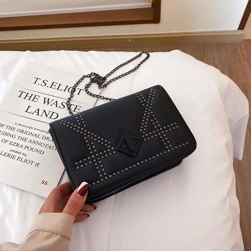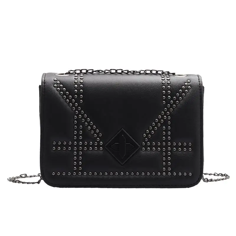 Повседневная сумка через плечо из искусственной кожи, женская модная сумка с заклепками и цепочкой, маленькая сумка-мессенджер на плечо, квадратные сумки