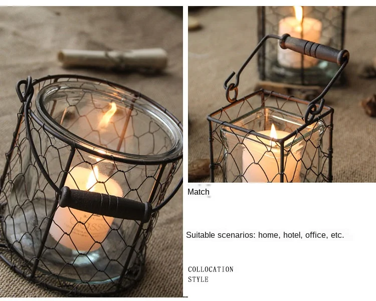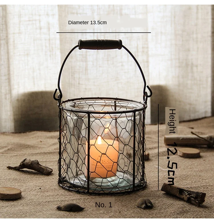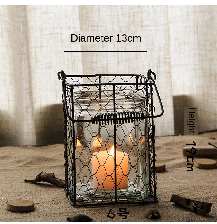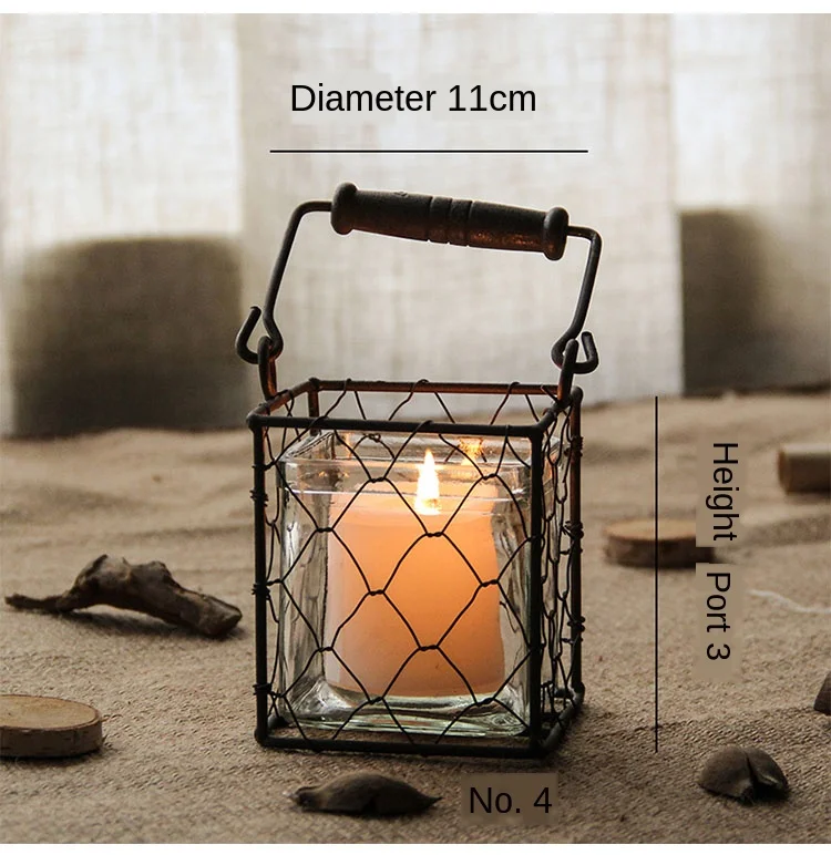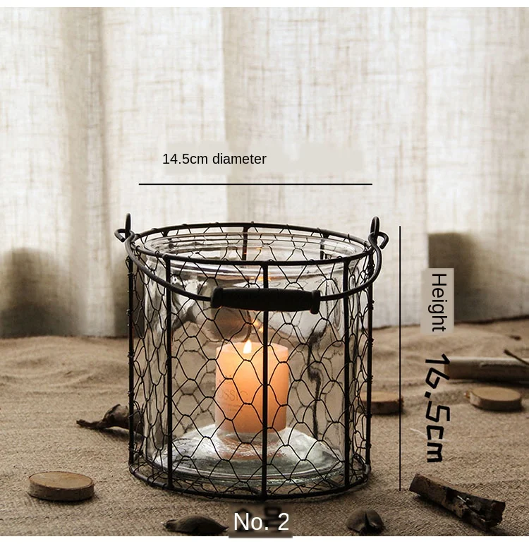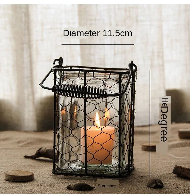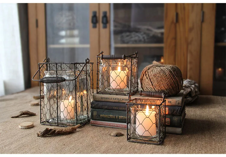 Железные подсвечники, стеклянный Ретро подсвечник, подсвечник, ваза, свечи, полое украшение, Рождественская ветряная лампа, FC194