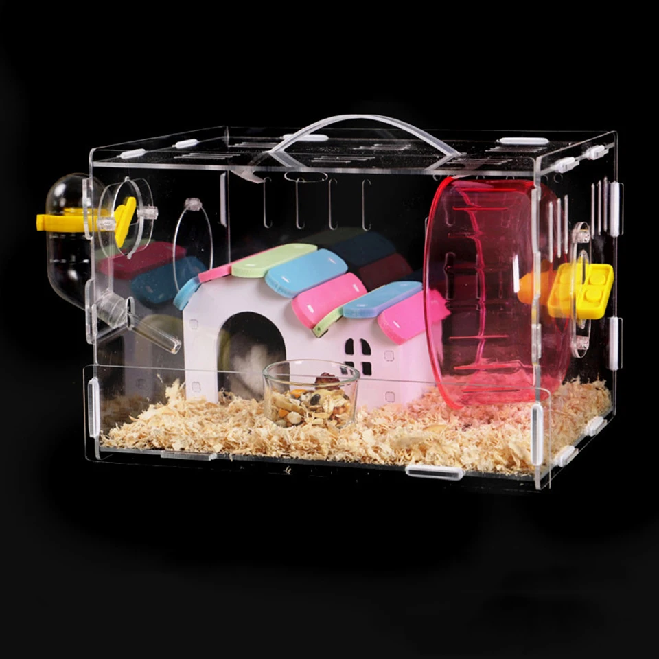 Это акриловая клетка для хомяка, большая прозрачная вилла, Золотая клетка для медведя, большие игрушки для замка Материал: акриловое волокно Цвет: Прозрачный Размеры: 25x20x16cm Подходит для: хомяка, шиншиллы, Ежика