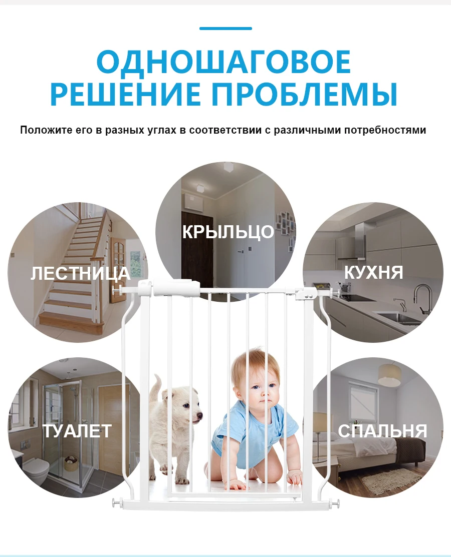 Безопасность всегда на первом месте с вашим малышом. Держите их в безопасности с помощью безопасности для детей. Ворота - необходимый инструмент для дома с маленькими детьми и широкими дверными или коридорными проемами. Он прочно изготовлен из высококачественных материалов, чтобы выдерживать строгие ежедневные условия эксплуатации. Наслаждайтесь простотой управления одной рукой и безопасностью конструкции предохранительной защелки. Идеально подходит для различных проемов комнат или на верхних ступеньках лестницы. Это безопасный и удобный способ содержать и защищать как вашего ребенка, так и дом.