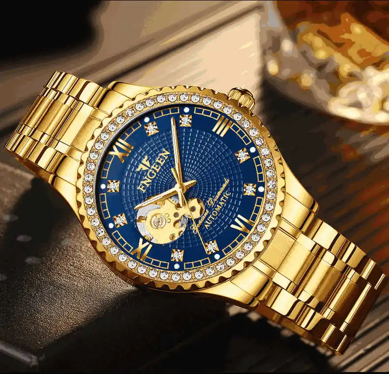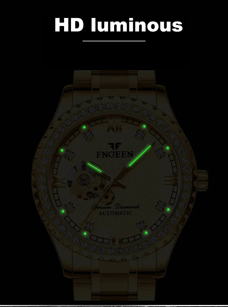 FNGEEN полые Скелет автоматические механические часы