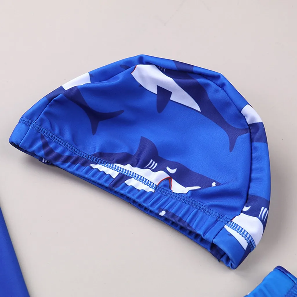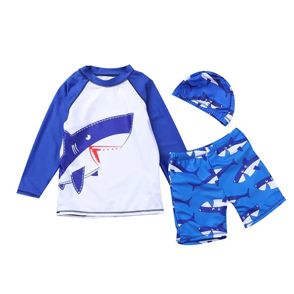 Baby Kids Boys Long Sleeve Printed Tops Shorts Swimwear Swimsuit With Hat Outfit