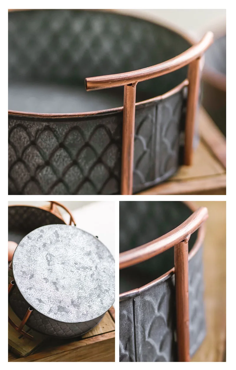 Европейская винтажная корзина для хлеба с фруктами ручной работы, круглые антикварные металлические подносы с ручками, ретро стол, кухонная корзина для домашнего декора