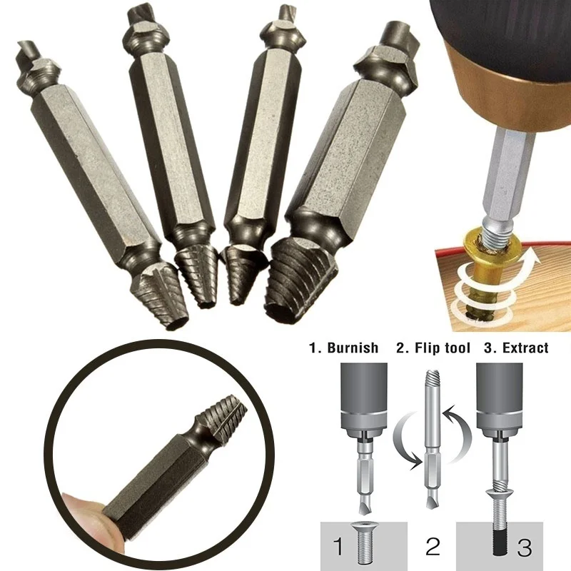Использование: сначала выньте сломанный винт в дереве, затем используйте другую головку, чтобы вынуть винты.