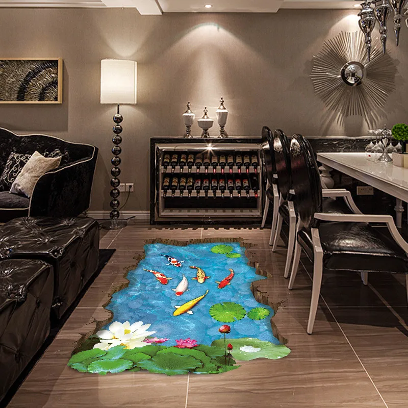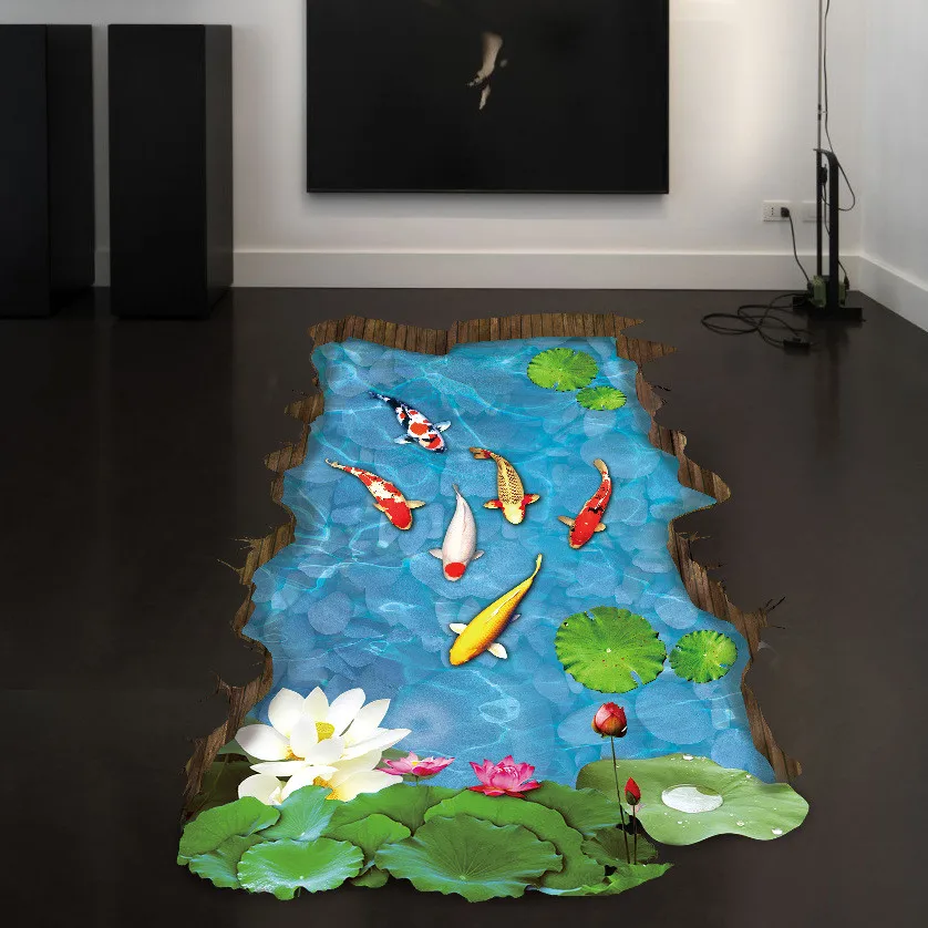 Новинка, большие 3D стерео настенные наклейки для украшения пруда, бассейна, рыбы, семьи, детская комната, пол, гостиная, настенные наклейки, домашнее украшение