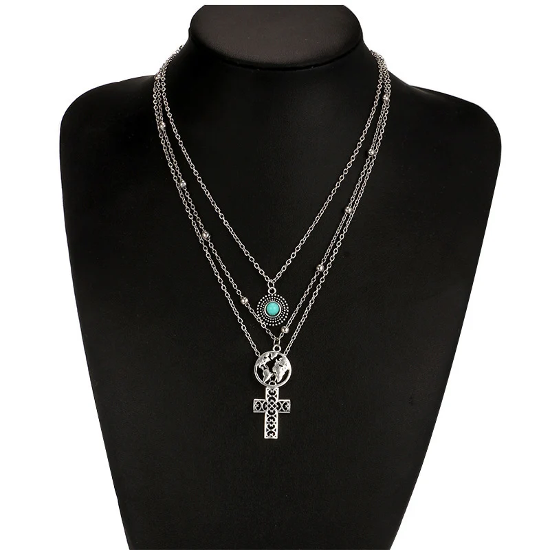 ШармДлинныйМногослойная карта с зеленым камнемОжерелье с подвеской для женщинЮвелирные изделия
