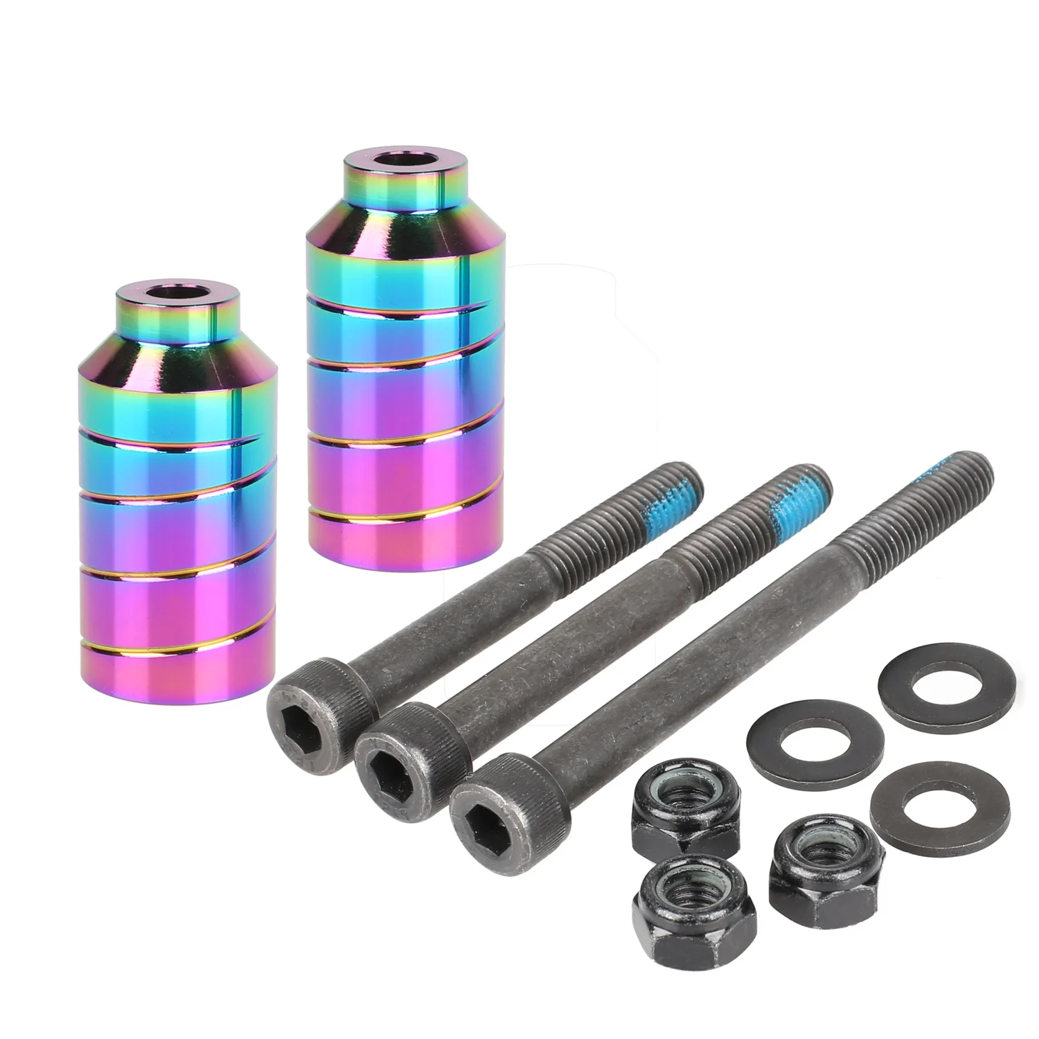 Модель: колышки скутера с осью 1. Посылка: 2 шт. + винты (набор) 2.Peg Размер: как показано на картинке 3. Материал Peg: алюминий 4. Размер оси: 1x55 мм, 1x75 мм, 1x90 мм (подходит для большинства мопедов и вилок) 5. Материал оси: углеродистая сталь класса 12,9 6. Дизайн: Neo Chrome (красивый вид) 7. Цена указана за 2 шт колышек с 3 шт осью Совместимые модели скутеров для разной длины оси Ось 2,5 ": обычно используется в переднем колесе скутера Совместимые модели: Razor (Pro, Ultra Pro, Pro X, XX, XXX),Madd Gear Pro/Team/Ninja/Nitro,Grit elemental/Mayhem/Fluxx/Elite, envy prodigy/заявить и многое другое (установки двух колышки перед нужно добавить 0,5 "? Ось 3 ": обычно используется в скутере заднего колеса Совместимые модели: зависть, МГП 4 дюйма палуб, TSI полета, Грит, самоотверженность, а также Fasen, urbanartt и многое другое Ось 3,5 ": обычно используется в скутере заднего колеса Совместимые модели: для бритвенного станка (Pro, Ультра Pro X, XX, XXX, Black Label), район V4, Феникс, МГП 4 дюйма палуб, плотные, счастливая и многое другое Следует ли выбрать колышки для скутера? Колышки являются воротами к совершенно новому пакету трюков и идей. С помощью колышков вы можете сделать освежитель льда и зубочистки. Вы можете сделать трюки в 5050s и из 5050s. Они просто делают шлифовку намного проще и стильнее. Так что если вам нравится делать smith grinds и больше «уличного» гонщика, колышки, безусловно, для вас. Количество трюков, которые вы можете сделать с колышками, бесконечно. Они открывают так много новых возможностей, что они стоят своих денег, и kutrick считает, что каждый наездник скутера должен по крайней мере купить пару колышков и попробовать их.