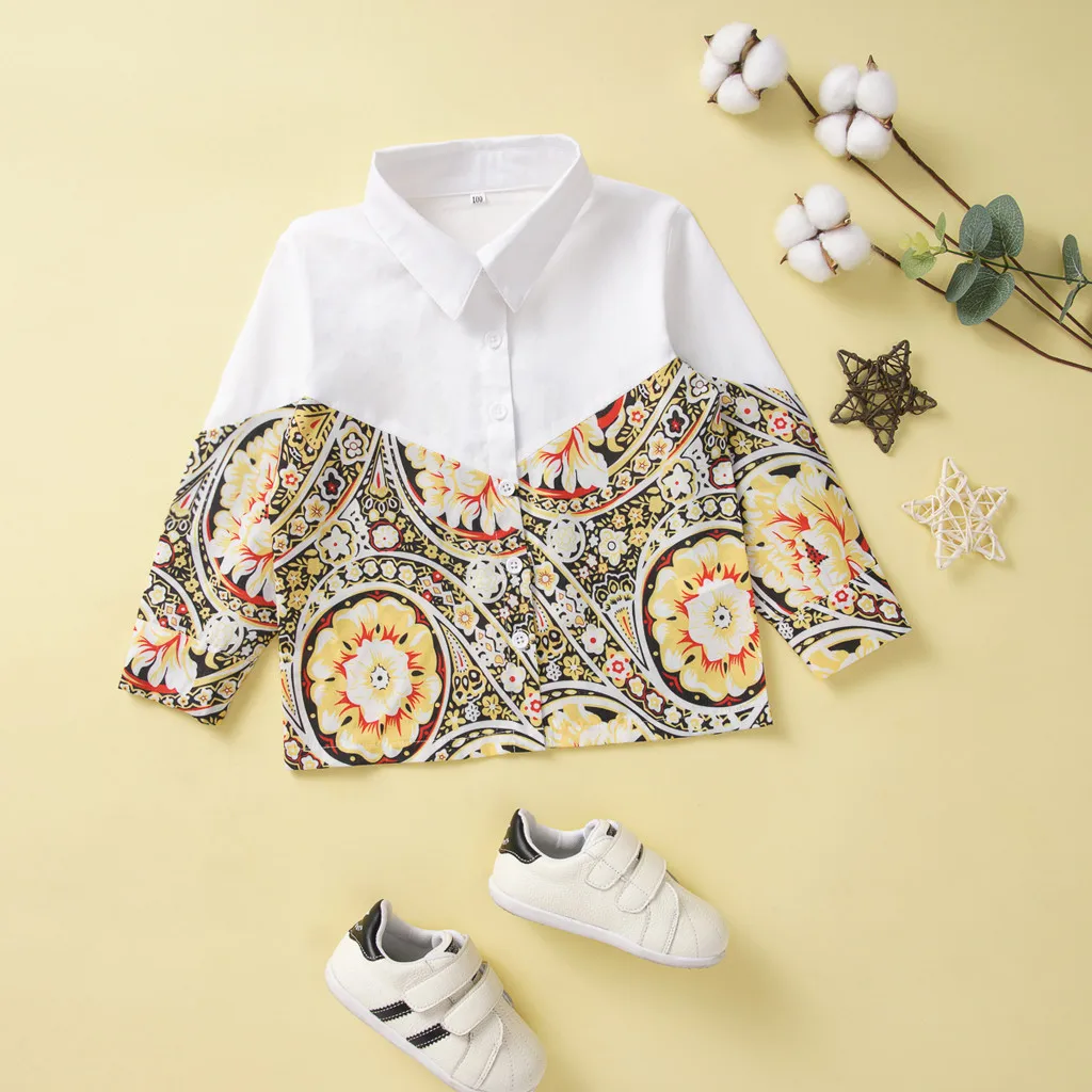 Детские рубашки для мальчиков, новая модная рубашка с длинными рукавами и цветочным принтом для маленьких мальчиков, рубашка на пуговицах, блузка для детей 2020