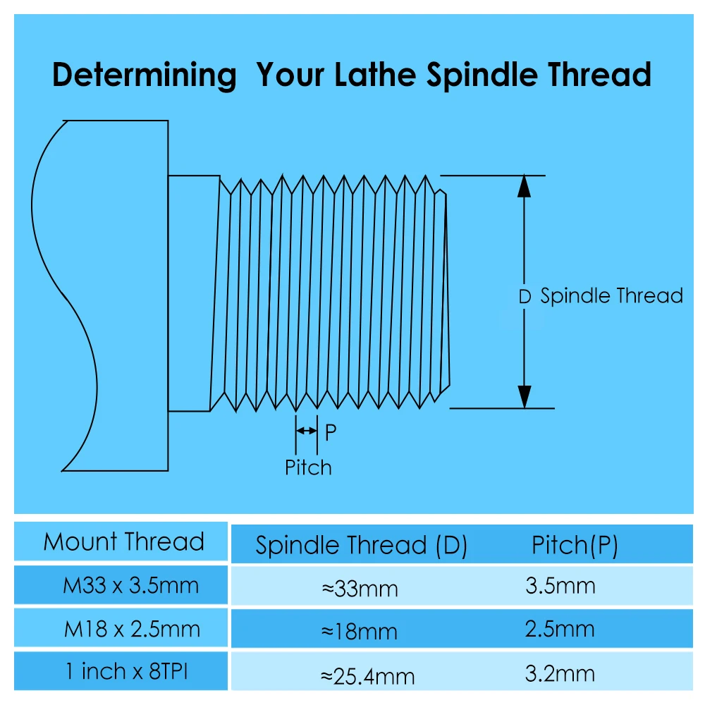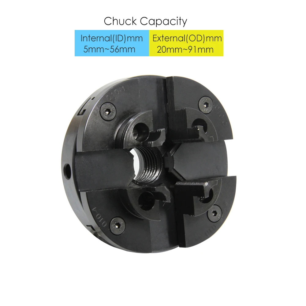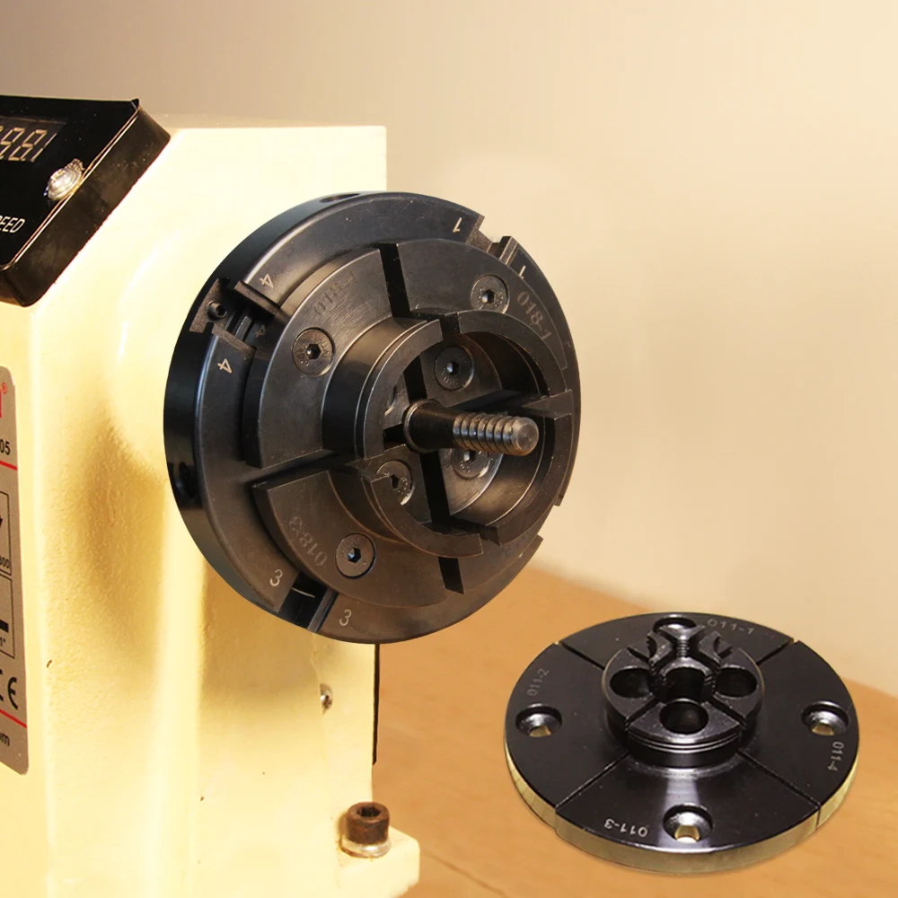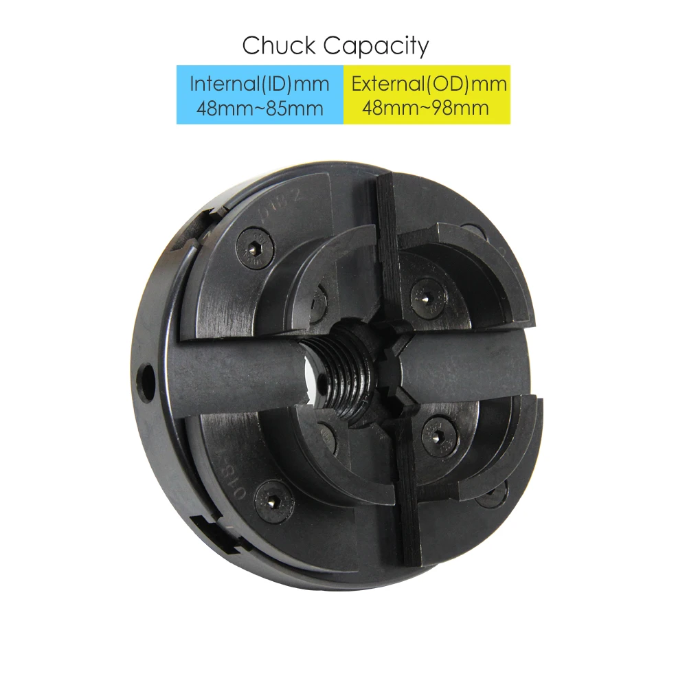 -4-Челюсти 100 мм Самоцентрирующийся зажимной дерево токарный патрон. -Шаг челюсти захвата Наружный диаметр: 20 мм-91 мм, Внутренний диаметр: 5 мм-56 мм. -Круглая рукоятка Наружный диаметр: 48 мм-98 мм, Внутренний диаметр: 48 мм-85 мм. -Резьба крепления шпинделя: • 1 "X 8 tpi • M33x3.5 • M18x2.5