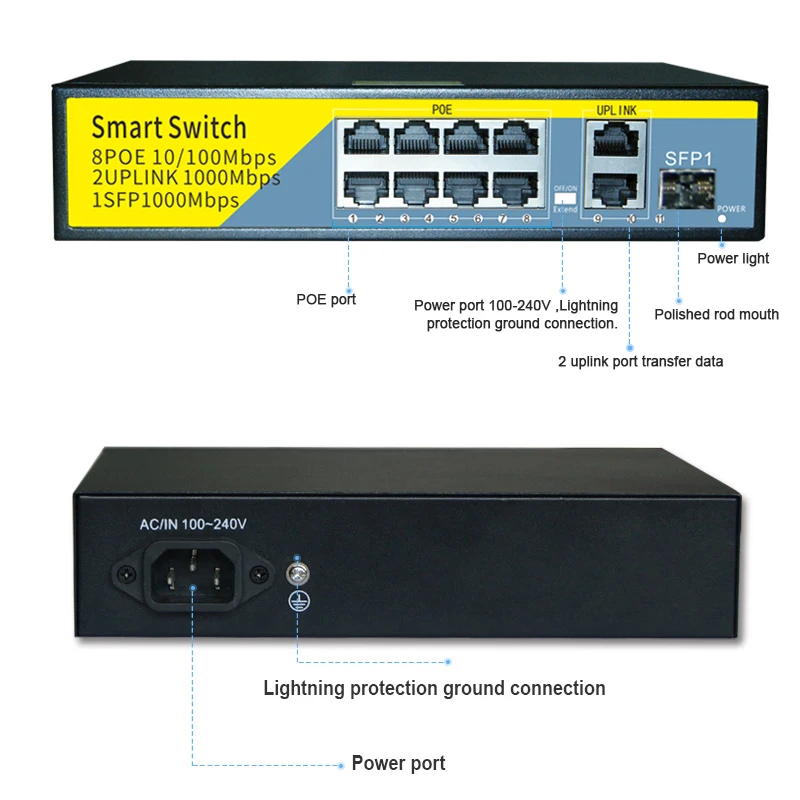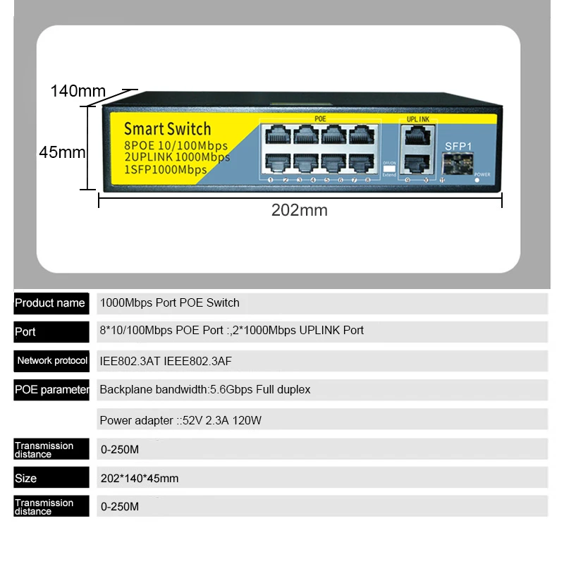 11 Порты и разъёмы POE коммутатор Gigabit Ethernet-коммутатор с 52 в Мощность адаптер 4 PoE Порты и разъёмы s подходит для сети IP камеры или беспроводной доступ в Интернет/CCTV