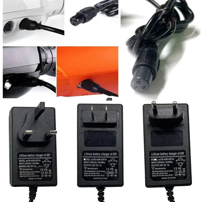 Чтобы сделать окончательное подтверждение. Если это подходящее зарядное устройство для вашей машины, проверьте оригинальный адаптер, чтобы увидеть соответствие выходных характеристик: 42 в 2 а с 3-контактным встроенным разъемом постоянного тока. Данное зарядное устройство совместимо с большинством типов скутеров, для многих других брендов с 36V комплект литий-ионный батарей.
