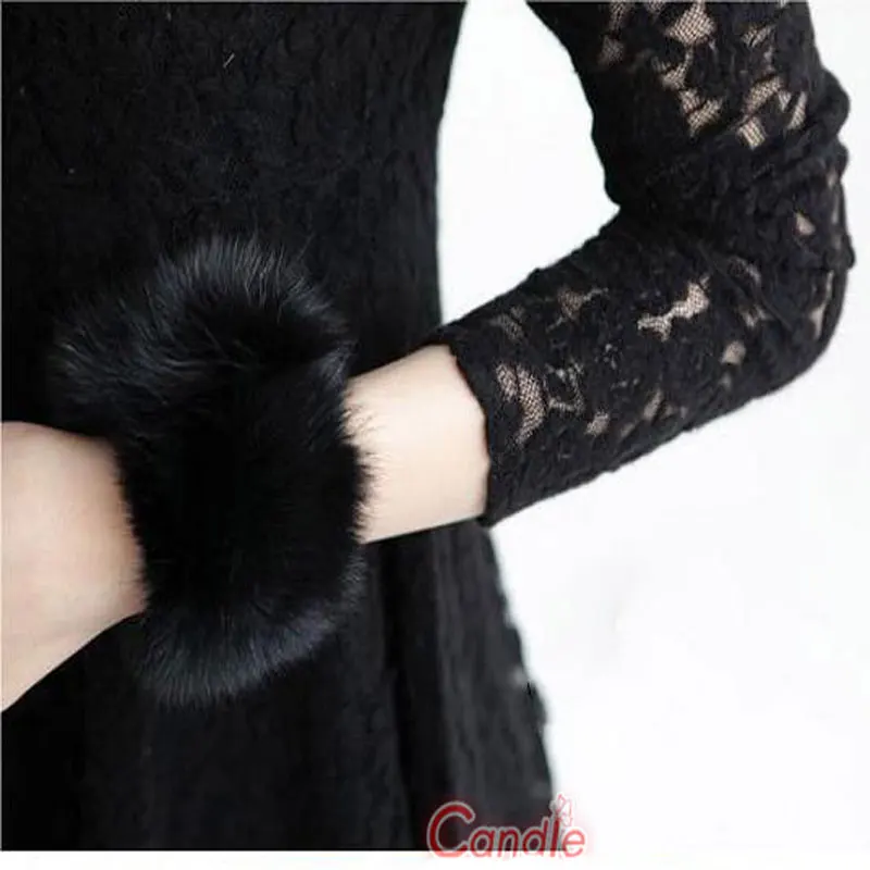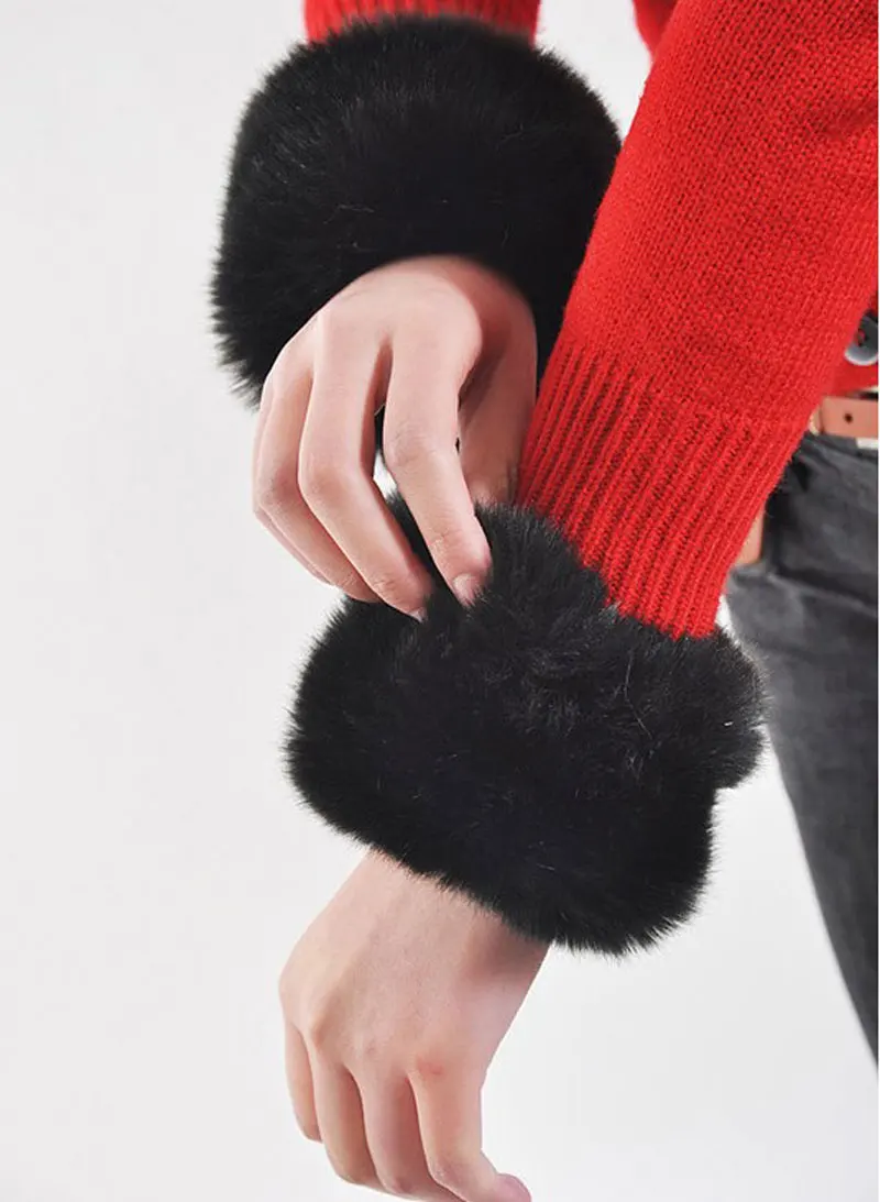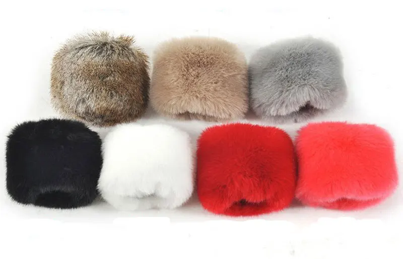 1Pair Women Winter Wrist Warmer Oversleeve Warm Soft Faux Rabbit Fur Windproof Arm Bracelet Solid Color Wristbands Arm Sleeves