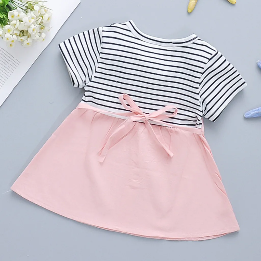 Милое Полосатое платье в стиле пэчворк для маленьких девочек; Повседневная одежда