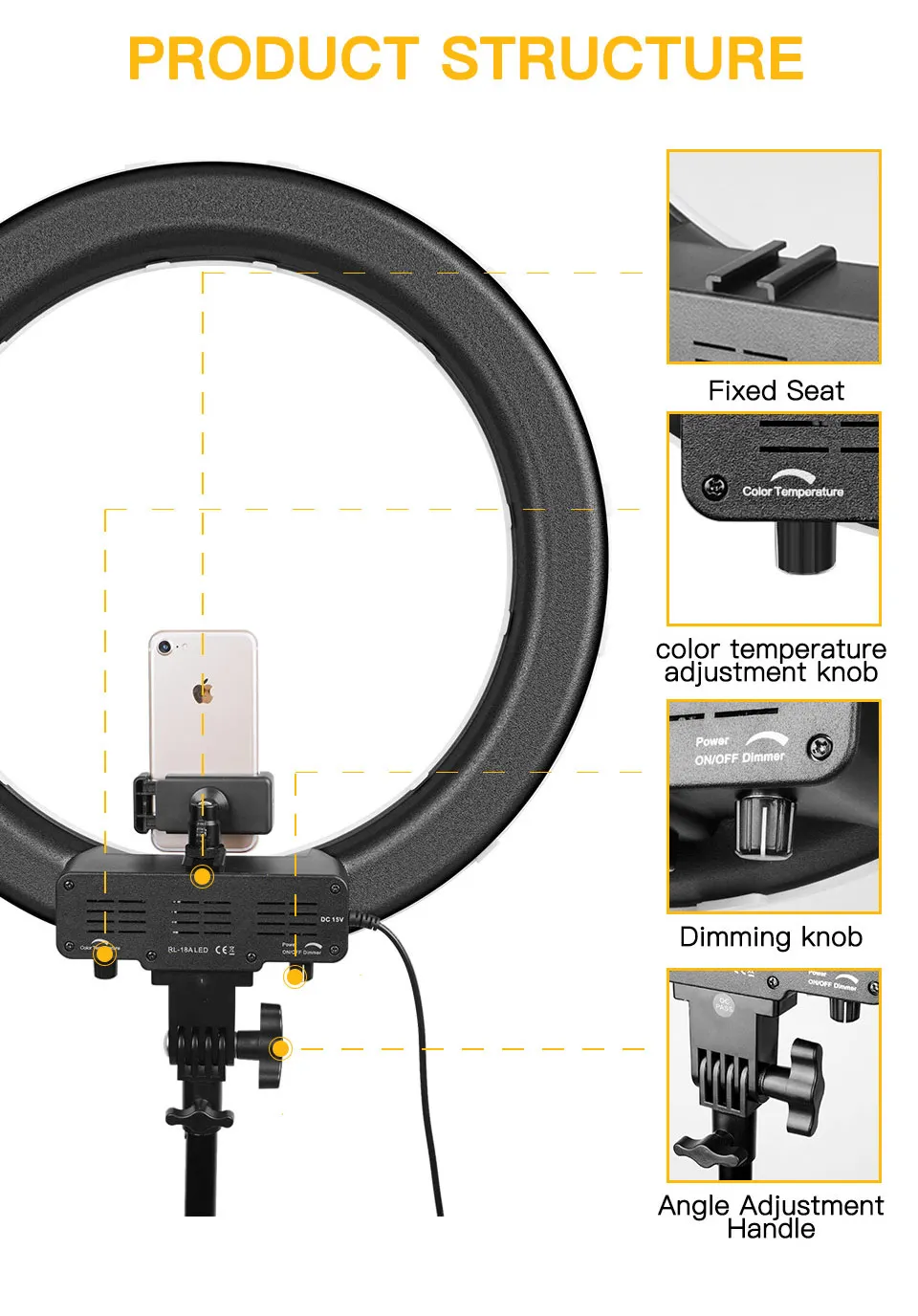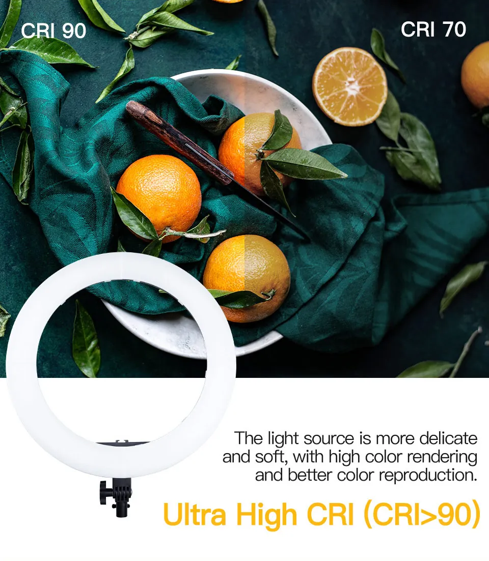 1. Диммируемый 18 "светодиодный SMD кольцевой светильник с широким диапазоном затемнения от 1%-100%.