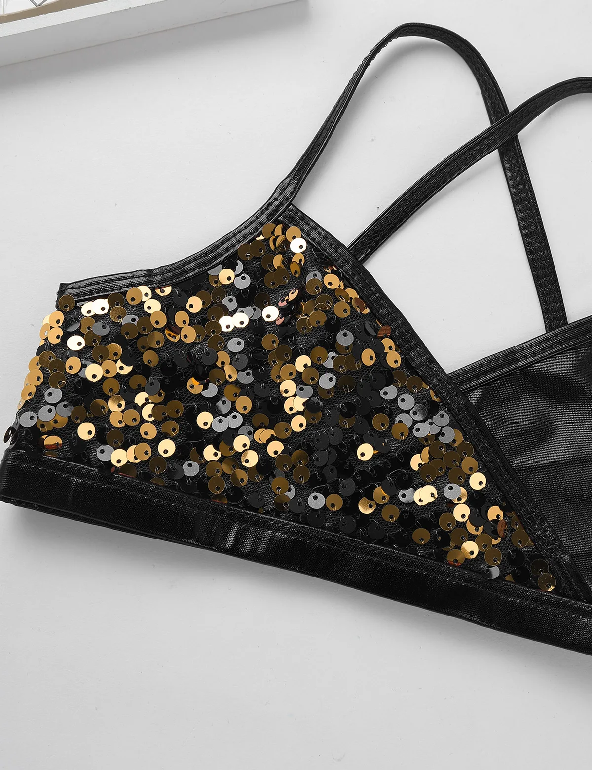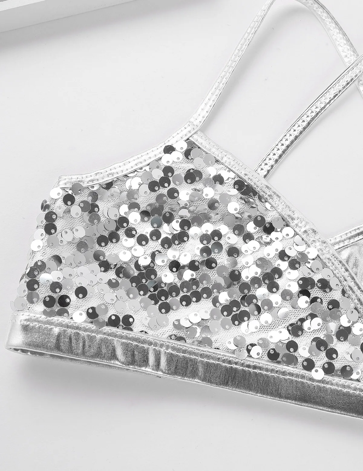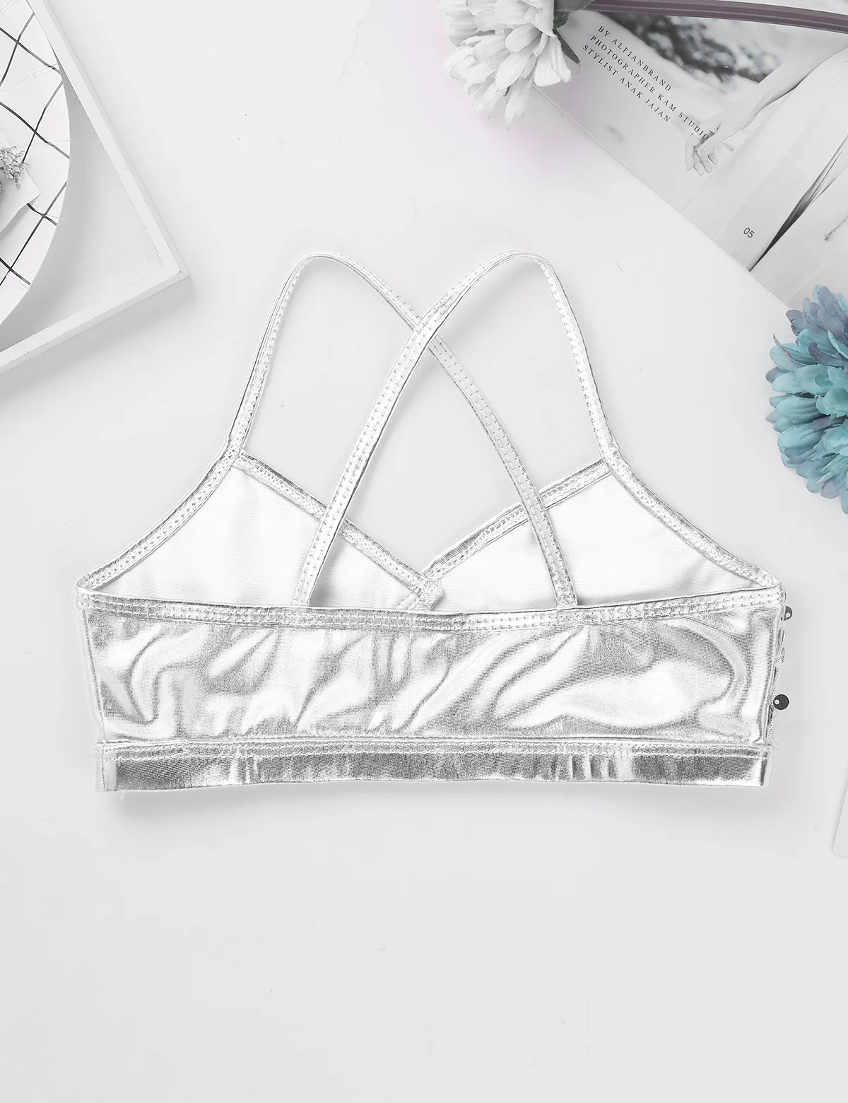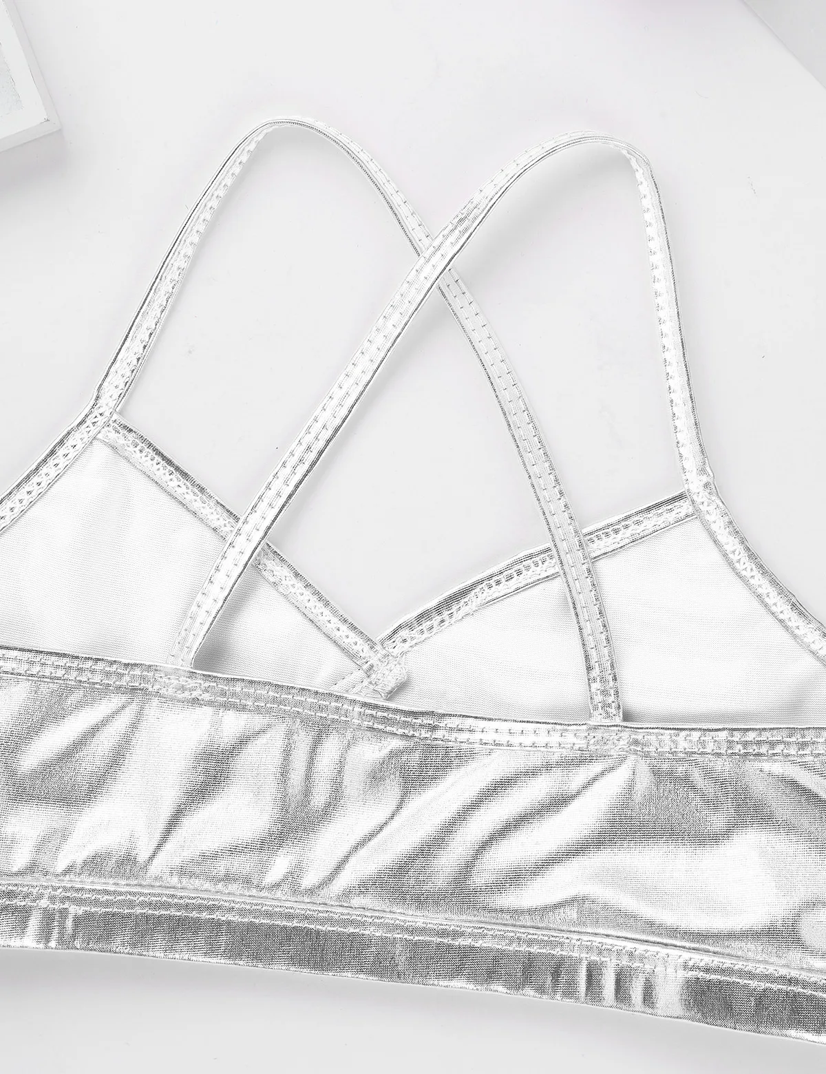 Топ бюстгальтера изготовлен из полиэстера и блестящего материала, ручная стирка.
