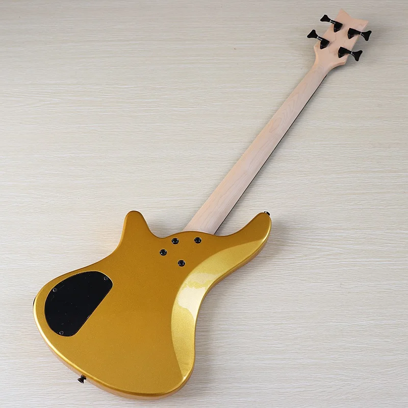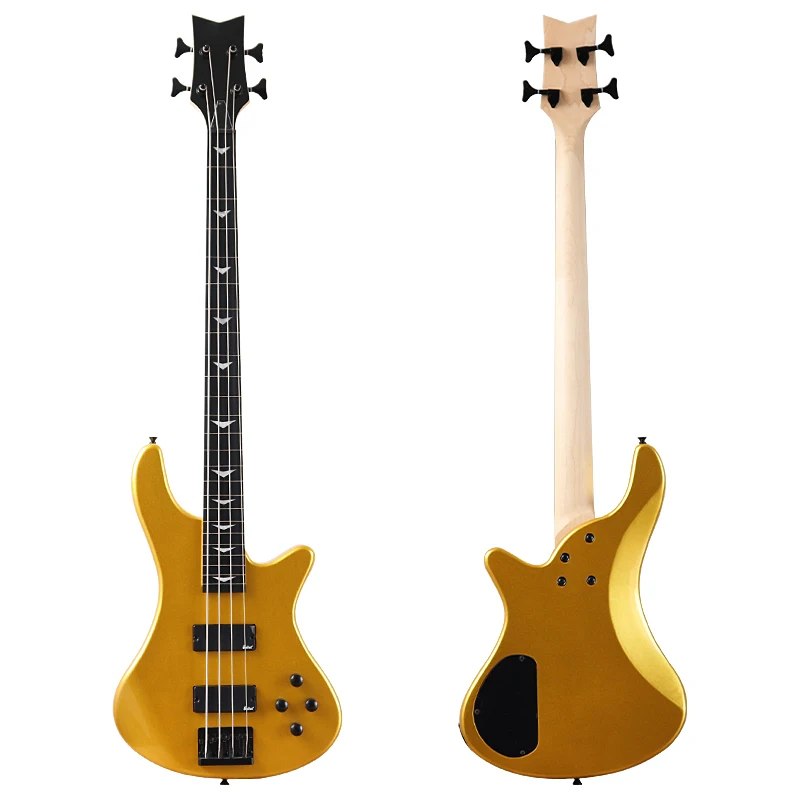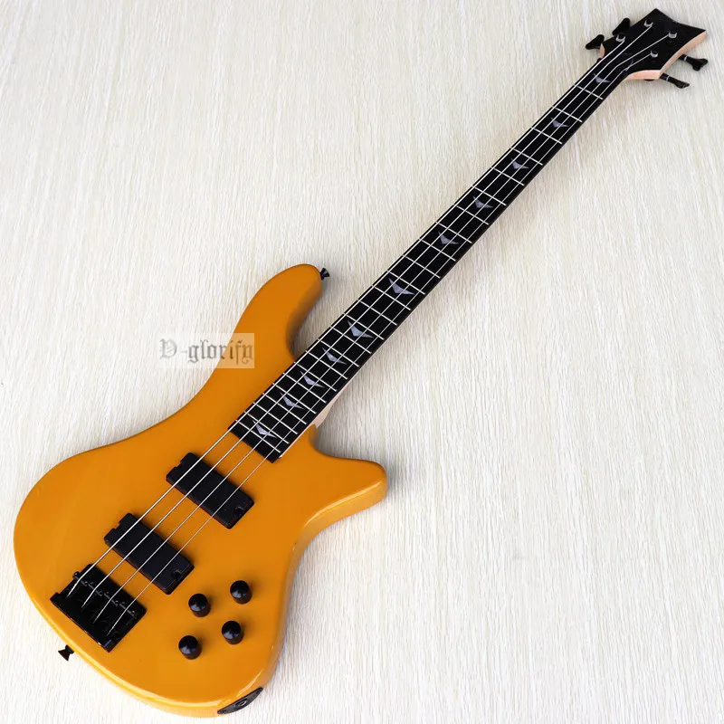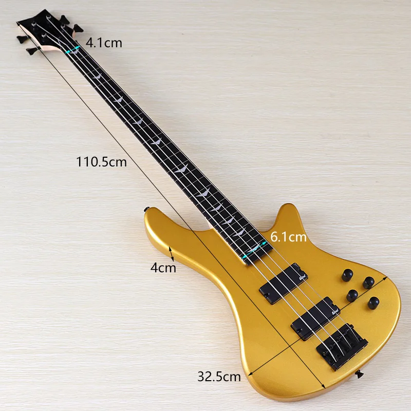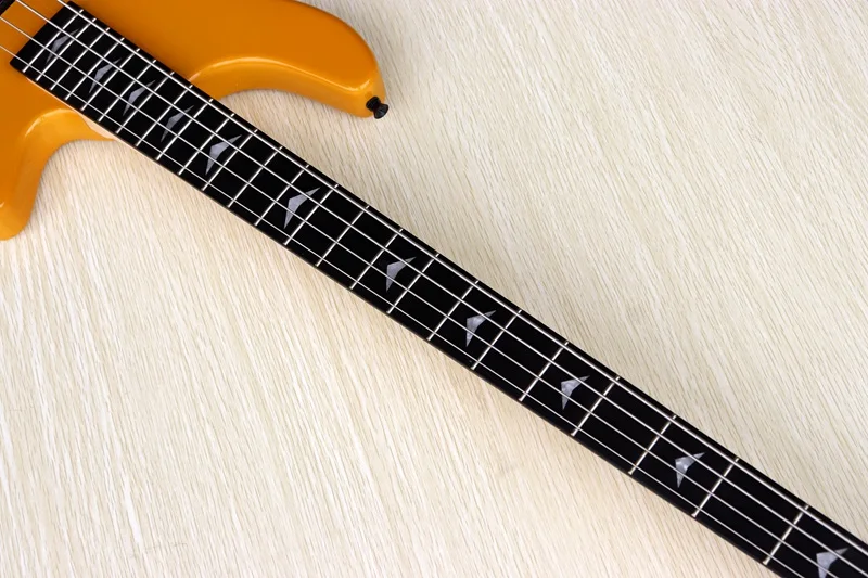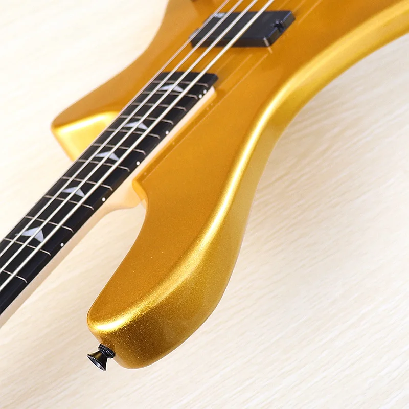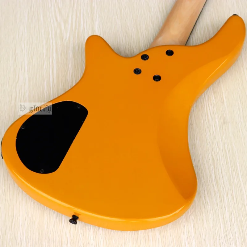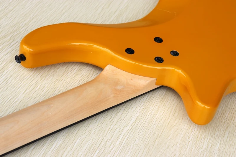 Оранжевая электрическая бас-гитара, 4 струны, без грифа, с полным корпусом из массива бас-дерева, 43 дюйма, глянцевая бас-гитара цвета шампанского