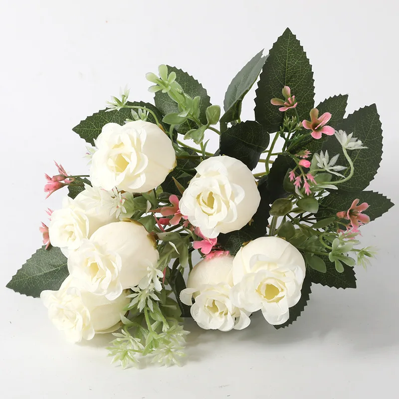 Европейские винтажные Искусственные Шелковые Чайные розы, 7 голов, 4 букет листьев, свадебные, домашние, искусственные в стиле ретро, вечерние, для украшения своими руками
