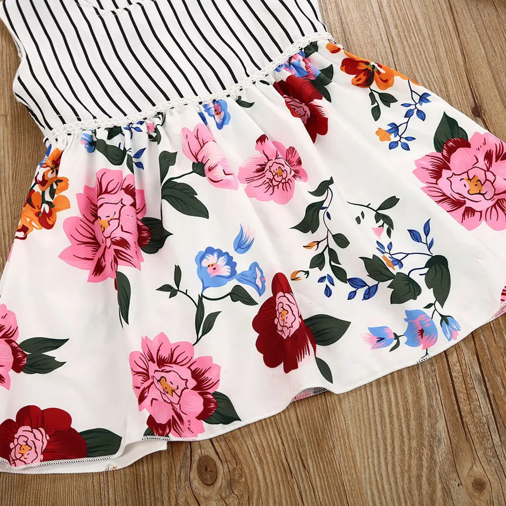 Платье в полоску без рукавов с цветочным принтом для маленьких девочек; Одежда