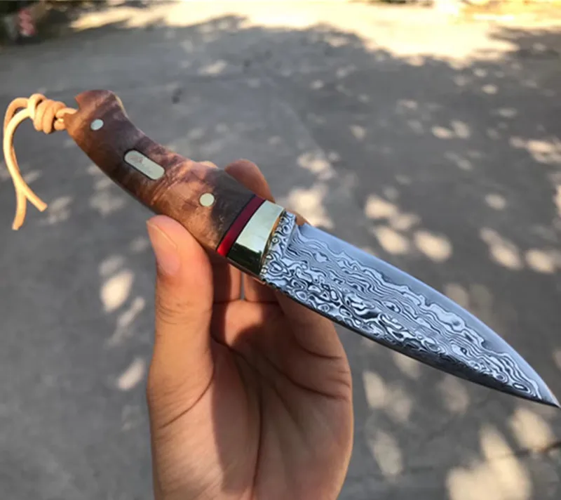 Полный Tang нож с фиксированным лезвием ножи для выживания Инструменты для кемпинга ручной работы Прямые ножи VG10 Дамасская сталь охотничий нож