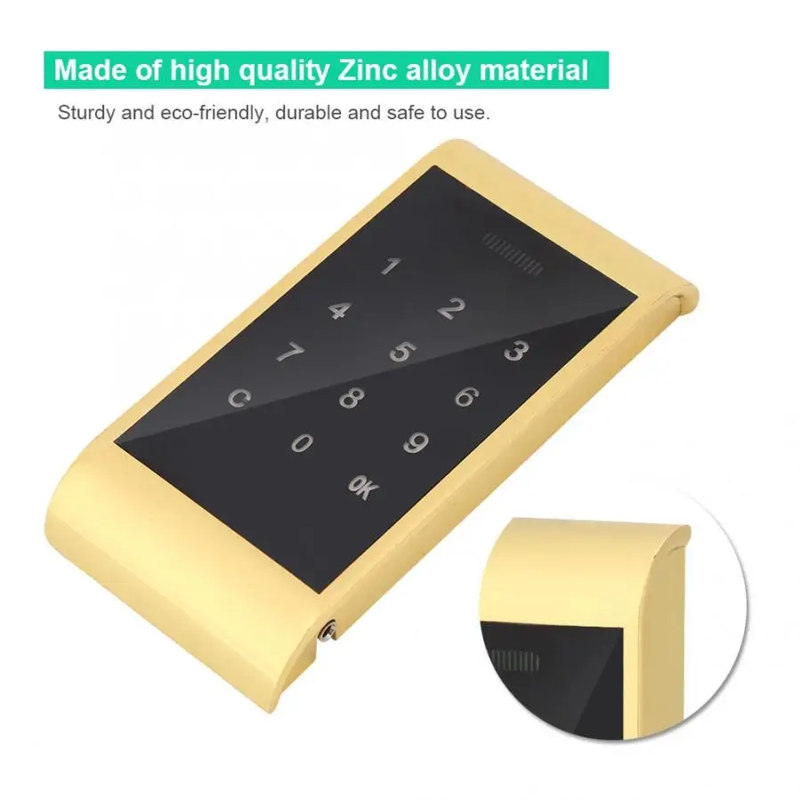 Изготовлен из высококачественного цинкового сплава, прочный и экологичный, прочный и безопасный в использовании. Удобный в использовании. Блокировка паролем сенсорной клавиатуры, не требуется никаких ключей. Компактный дизайн, тонкое мастерство и элегантный внешний вид. Подходит как для металлического, так и для деревянного шкафа. Легкая установка. Все необходимые аксессуары предоставляются вам в посылка. Можно установить два вида паролей, пароли супервизора (от 6 до 15 цифр) и пароли пользователя (от 4 до 15 цифр). Пароль пользователя составляет 1111, а пароль супервизора-8888 8888, подходит для отеля, личного клуба и т. Д.