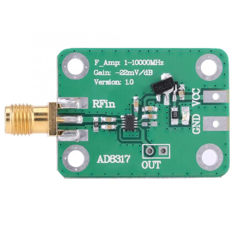 Продукт разработан с Помощью Чипа AD8317, и используется для обнаружения мощности радиочастотного сигнала. Может обнаруживать мощность от-55 дБм до-0 дБм радиочастотного сигнала, так что радиочастотный сигнал преобразуется в выходное напряжение постоянного тока.