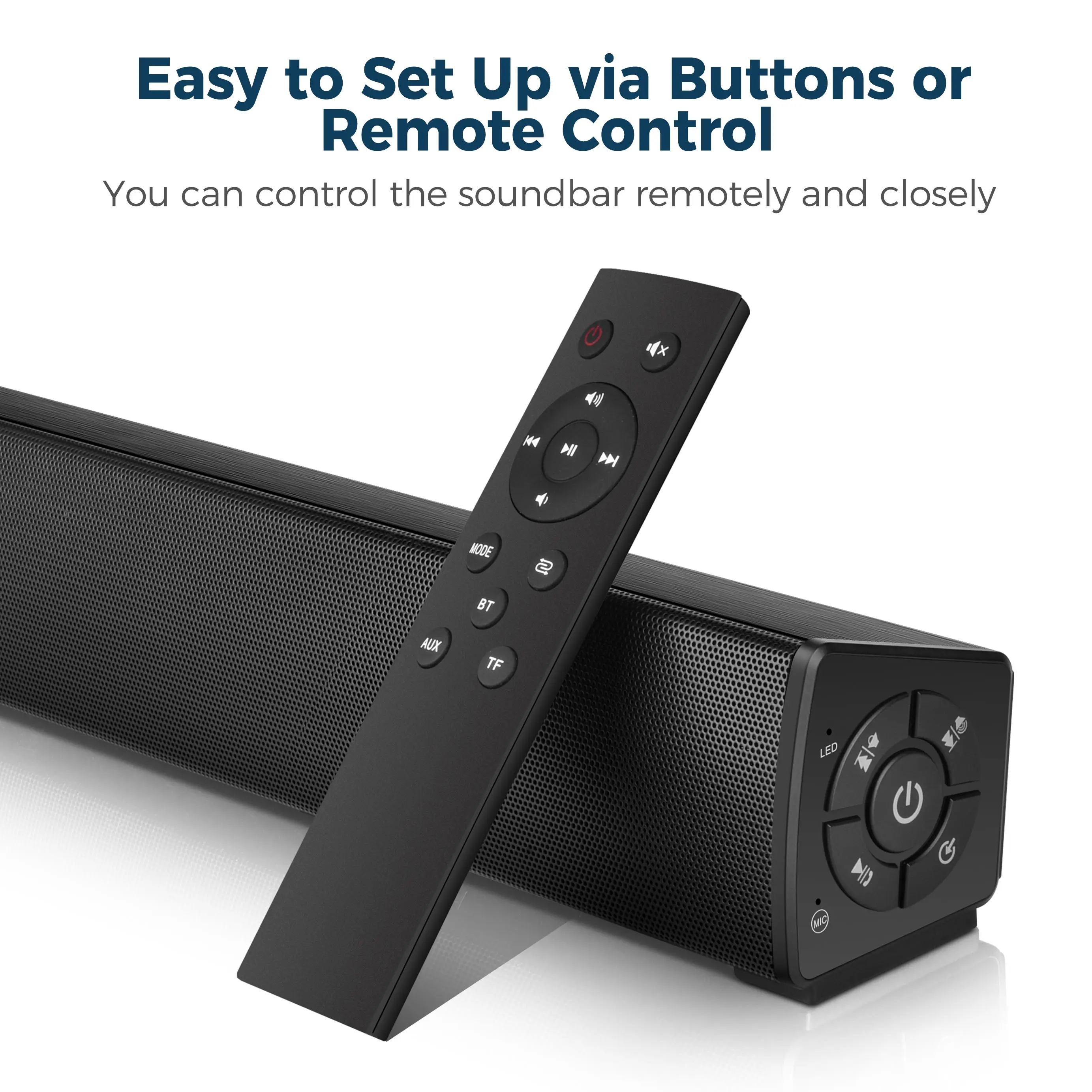 Для удобства управления Используйте беспроводной пульт дистанционного управления или кнопки на боковой панели. Вы можете управлять этой Саундбар удаленно и тесно.
