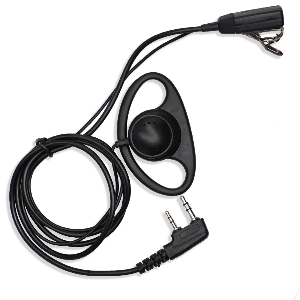 D-type Covert Earhook Earpiece Walkie Talkie 2 Pin PTT Mic Headset PTT For Kenwood For Baofeng BF-888S UV-5R UV-82 Two Way Radio